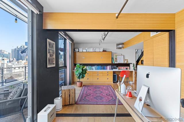 Synonymous with modern lofty style living, the Doma building offers an unparalleled location in the heart of little Italy, This spacious penthouse two-bedroom condo boasts a large oversized balcony two full bathrooms and a built in office. The open-concept living area is perfect for entertaining, with expansive windows that flood the space with natural light and provide breathtaking city views. The gourmet kitchen with luxury Bertazzoni Italian stove and refrigerator, seamlessly integrated into the living area, is a culinary enthusiast's dream, ready for your next dinner party or quiet meal at home. Retreat to the serene master bedroom loft, a sanctuary complete with ample closet space and a spa-like en-suite bathroom. Located in the vibrant heart of San Diego, this condo offers easy access to the best dining, shopping, and entertainment the city has to offer. Condo includes two underground side by side parking spaces, large walk in closet, central air conditioning/heating. Amenities include a fitness center, community rooftop viewing deck.