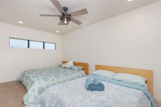 Contemporary furnished unit in prime location. High end finishes. One garage is converted to a bedroom and the other houses laundry +storage. Currently has 4 queen beds. Can also be rented unfurnished. Outdoor BBQ area not pictured. Available 3/1/2026.