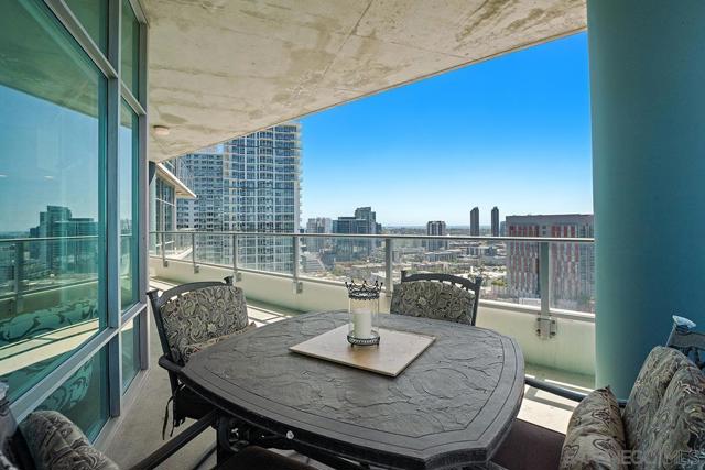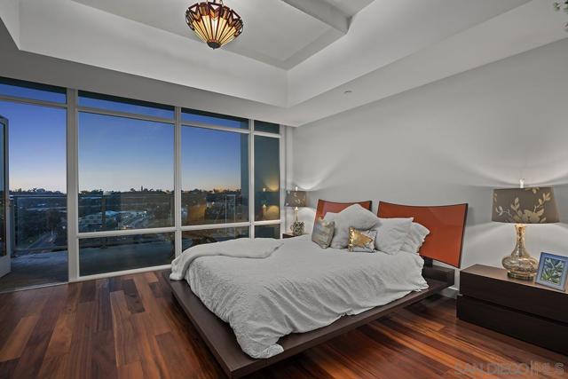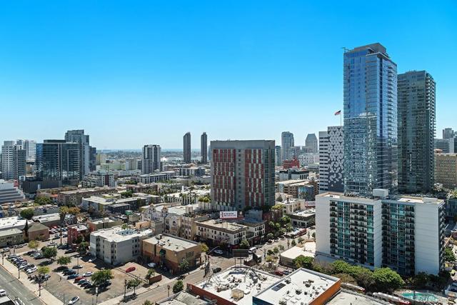 Step into one of only two exclusive penthouses at Smart Corner, where sophistication meets unparalleled city living. This spacious northwest corner residence vaunts panoramic views of the Downtown skyline, San Diego Bay, and the Pacific Ocean—framed by floor-to-ceiling windows and two private balconies. A true unicorn in the market, this meticulously maintained home blends elegance with modern comfort. The open-concept layout features split dual bedroom suites, each with its own ensuite bathroom. The gourmet kitchen is a chef’s delight, equipped with stainless steel appliances, granite countertops, and a stylish eat-at bar adorned with elegant pendant lighting. Rich Tiger Wood flooring flows seamlessly throughout, adding warmth to the bright, airy space, while a convenient powder room ensures effortless entertaining. The primary suite is a private oasis, complete with a walk-in closet and a balcony that opens to serene views of Balboa Park and distant mountain peaks. A second ensuite bedroom provides comfort for guests or a home office with a view. Plus, enjoy the convenience of side-by-side parking spaces—a coveted perk in urban living. Smart Corner is an all-encompassing hub of work, play, shop, and live! It is conveniently located near the 163 freeway, I-5, Highway 94, Petco Park, the Gaslamp Quarter, and Balboa Park. A trolley station located directly below the building ensures Smart Corner has all an urban dweller could want. Amenities include a roof-top sun deck with spa, a barbecue area, gym, and wet bar on the 20th floor, and fully equipped exercise room. Welcome home!