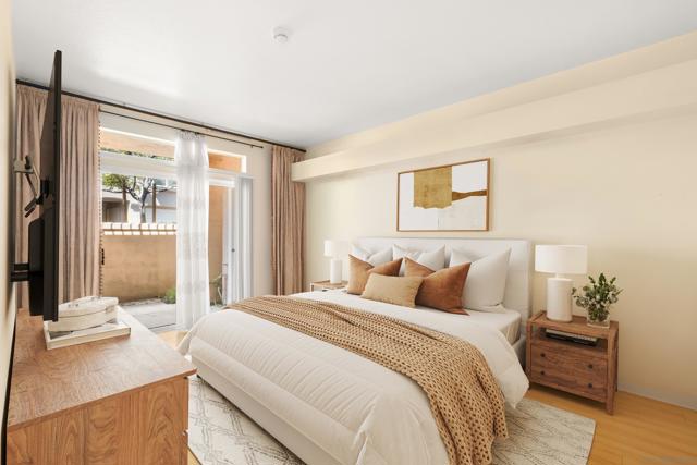 Rare chance to invest in Renaissance, desirable master-planned community in a heart of UTC, where you feel like in a small village of charming Italian island of Capri. All 6 distinctive estates connected as unique private domain, where walking trails, lush parks, contemporary gardens, small shops, cascading waterfalls remind you Mediterranean atmosphere. Westfield UTC mall, Nobel Athletic center & Park, trolley line just walking distance away. Ground floor corner unit with no stairs. First time on a market in 18 years. Newly remodeled open style ergonomic kitchen with granite countertops. Newer full size fridge, stove, microwave & modern cabinets. Parquet flooring throughout. 2 full bathrooms. Walk-in closet. Fireplace in living room. Huge patio for morning coffee. 1 car attached garage with few shelves. Laundry room with new full size Samsung washer/dryer is in hallway near garage, with extra space for storage of your valuable treasures. Just steps away from pool/jacuzzi. There are plenty of guest parking. Low HOA fees, including water, sewer, trash. Professionally cleaned and ready to move in. What are you waiting for?