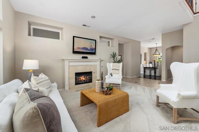 Located in sought-after Carmel Country Highlands, this rare, “original owner” Belmont home sits on a large premium lot and has been beautifully refreshed. It offers modern upgrades and functional living throughout. Features include, entry level bedroom/bathroom, soaring ceilings, fresh interior and exterior paint, new carpet with ultra-premium padding, and all-new lighting and fixtures. The remodeled kitchen includes stainless steel appliances, a custom ZLINE hood, a large waterfall edge, quartz island, soft-close, end cut oak cabinetry, and a walk-in pantry. A two-way fireplace and built-in entertainment center anchor formal dining and open living spaces. Upstairs offers three secondary bedrooms plus an ensuite guest room. Primary suite looks over the beautiful yard & features a remodeled fireplace. The completely remodeled, spa-like bathroom includes a large soaking tub, gorgeous walk-in shower, and dual-entry walk-in closet. Enjoy a resort-style backyard w/ pool, spa, waterfall, built-in BBQ/bar, and mature landscaping. Dual HVAC and whole-house audio complete the move-in-ready home ideally located near top schools, shopping, and dining! Extensively updated throughout, this home features designer lighting and fixtures throughout, new carpet (premium padding), fresh interior/exterior paint, recessed lighting, and updated bathrooms with anti-fog mirrors. Bright floor plan with soaring ceilings, formal dining, a built-in entertainment center, and a refreshed two-way fireplace. Remodeled kitchen w/ stainless steel appliances: GE Profile convection microwave/oven, Whirlpool double-door refrigerator w/ dual freezer drawers, Bosch dishwasher, 5-burner gas cooktop, custom ZLINE hood, soft-close end-cut oak cabinetry w/ Emtek hardware, pull-outs, large, waterfall edge, quartz island, and walk-in pantry. Features include whole-house audio, surround sound, dual HVAC, updated ironwork, and iron/wood stair railings. Upstairs: 3 secondary bedrooms + ensuite guest room. Primary suite with fireplace, soaking tub, walk-in shower, wood-look tile, and dual-entry walk-in closet. Backyard with pool/spa,waterfall and new pool equipment w/ Pentair app controls in place , built-in bar w/new BBQ, with pass-through to kitchen, multiple lounge areas, beautiful grassy front yard, and mature landscaping throughout. 4-car driveway + 3-car garage.
