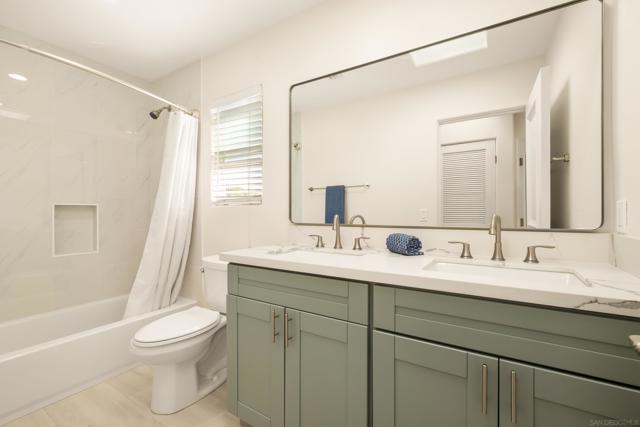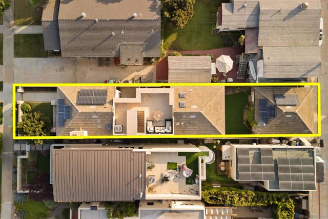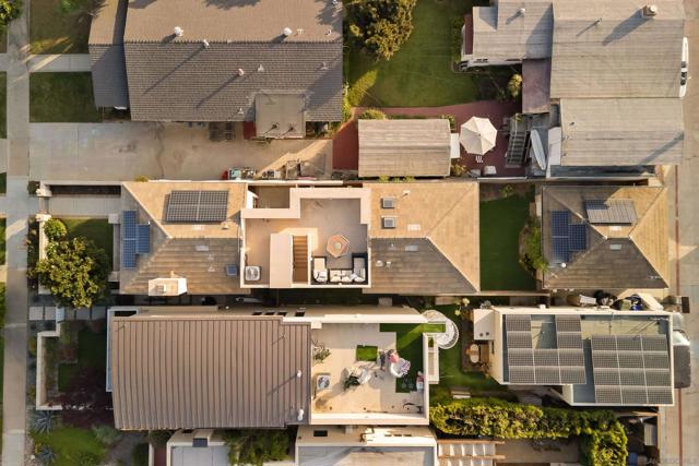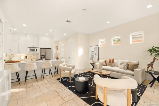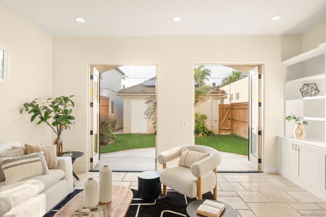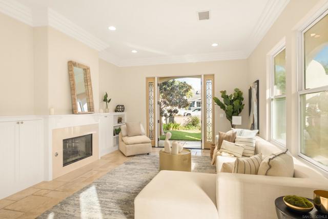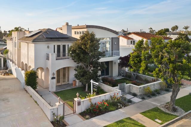 In the heart of Coronado Village, this stunning residence captures the quintessential Coronado lifestyle. Soaring 10-foot ceilings flood the home with natural light, complementing the elegant tumbled travertine flooring throughout the main living areas. The thoughtfully designed kitchen features full-height alder cabinetry, quartz countertops, and stainless steel appliances, ideal for both everyday living and entertaining. Custom built-ins in the living and family rooms add a refined, sophisticated touch. Upstairs, all bedrooms are privately situated, including a spacious primary suite with three closets, a private balcony, and a beautifully appointed ensuite bath. A bright, built-in office or study area surrounded by windows offers the perfect work-from-home setup. Enjoy breathtaking 360-degree panoramic views from the expansive rooftop deck, showcasing Coronado, the iconic bridge, and city skyline. Additional highlights include owned solar, a tankless water heater, and a two-car garage with convenient alley access, an always sought-after feature in Coronado.