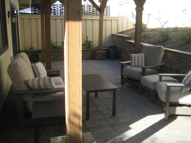 Gorgeous single level detached home with NO STEPS, in turnkey condition. A rare offering of this floorplan. Ugraded and remodeled with beautiful counters and luxurious baths. New carpeting. remodeled kitchen, loads of cabinets, newer appliances, and GAS Cooking. Gated entry with stone walkway and beautiful palms and plantings. Fully fenced, and back patio has handsome rock planters and stone wall and an attractive overhead trellis. Patio Furniture included. Landscape lighting highlights the grounds. Private lot, steps from pool/spa area. Walking path, community park steps away. Close to transport, shopping.