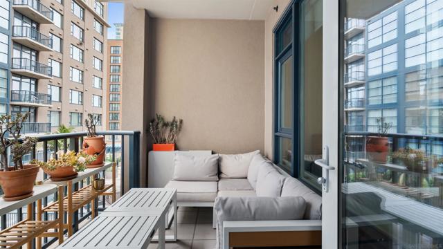 Welcome to Trellis on 5th Avenue. Stylishly updated and centrally located, this residence offers bright, sunlit interiors with charming courtyard views. Inside, you’ll find stunning wood floors throughout, a thoughtfully renovated kitchen with open shelving, granite countertops, and sleek stainless steel appliances. The bathroom boasts an industrial-chic vibe, featuring a modern vanity and low-maintenance concrete flooring. Step out onto your private balcony to soak in the beautiful San Diego weather, or take a short stroll to enjoy all the dining, shopping, and entertainment Downtown has to offer. Unit comes fully-furnished. Available June 1st. Trellis is ideally situated at the vibrant intersection of Fifth Avenue and K Street, right in the heart of Downtown San Diego’s dynamic Gaslamp Quarter. This desirable community offers fantastic amenities, including a beautifully landscaped entertainment courtyard, barbecue areas, and a well-equipped gym. Residents also benefit from the convenience of two high-speed elevators and a variety of ground-floor retail options just steps from the front door. Are you a baseball fan? The world famous Petco Park is within walking distance.