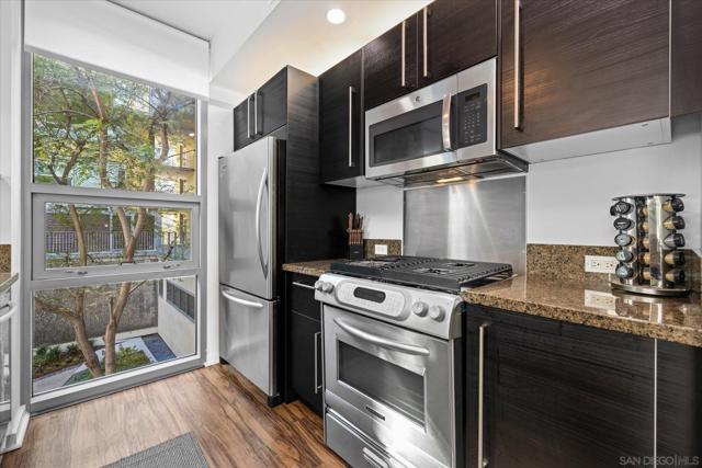 Get ready to upgrade your lifestyle here at the ICON high rise located in the heart of downtown San Diego. Having a walk score of 98/100, everything from restaurants, coffee shops, bars, shopping, grocery stores and of course Petco Park are all just a few steps away. Welcome to one of the largest one-bedroom, plus office space, floors plans in East Village, this SE corner residence gets an abundance of natural light and has lovely tree top views. This is one of the quietest units in all of downtown located on the inner sanctuary courtyard with eye catching sculptors and a radiating wall of glistening reflective wind elements to enhance your views. There is a separate area for a home office and an extra half bath for your guests. Bedroom en-suite has dual vanities and a walk-in closet. The expansive floor plan is flooded with natural light, thanks to the floor-to-ceiling windows that highlight the beauty of the courtyard. Enjoy a peaceful and private ambiance, with a thoughtful design that maximizes comfort and style. Ideal for those who appreciate a tranquil setting with easy access to city living, this condo truly feels like a sanctuary. Continued in supplement below... ICON has the best condo rooftop in all of downtown San Diego, named the ICON Skybox. This roof top has the most amazing views of the bay and downtown skyline. This amazing terrace has lots of seating, BBQs, a large screen TV and heaters. There is even a tiered seating section looking directly into Petco Park to watch baseball games and other events such as concerts etc. Other amenities include a large Fitness Center, Community Lounge with full kitchen, business center, TV, and workspace, Movie Theater, shared EV charger, 24/7 front desk staff and an onsite property manager. Don’t miss the opportunity to make this peaceful oasis your own!