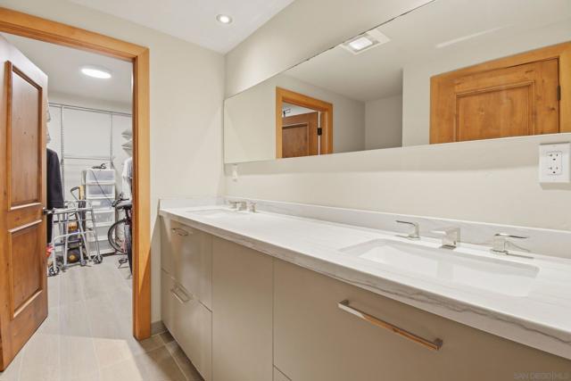 Enjoy the best of La Jolla Village living in this beautifully maintained condo ideally located in the heart of the Village. This spacious residence features an open-concept living and dining area with gleaming wood floors, recessed lighting, and classic wood plantation shutters throughout. A sliding glass door opens to a quiet private balcony surrounded by mature greenery, creating a peaceful treetop setting and relaxing outdoor retreat. The home offers two comfortable bedrooms including a spacious primary suite with a large walk-in closet and custom organizers. Bathrooms feature dual sinks with light-toned stone-style countertops and a tiled shower enclosure. Additional highlights include custom wood interior doors and base moldings, mirrored closets with built-in storage systems, a full-size stackable washer and dryer, and recently installed mini-split air conditioning/heat units providing efficient climate control in the living area and bedrooms. Ideally located just moments from La Jolla’s renowned restaurants, boutique shopping, beaches, and coastal attractions.