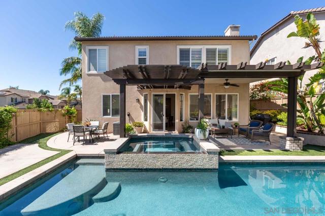 “This feels like a model home”—and it truly lives up to that impression. From the moment you enter, you’re welcomed by refined, designer finishes and a bright, open-concept layout that blends modern style with everyday comfort. * The thoughtfully designed floor plan flows seamlessly into a private backyard retreat, featuring a saltwater pool with a spillover spa that will get your attention. Whether enjoying the sun on the spacious deck or relaxing under the covered patio, this outdoor space is ideal for entertaining and creating lasting memories. * At the heart of the home, the kitchen is both functional and beautifully appointed, showcasing a large center island, white shaker cabinetry, tile backsplash, farmhouse sink, and expansive granite countertops—perfect for cooking and gathering. Abundant natural light throughout enhances the home’s move-in-ready appeal. * A generous first-floor bonus room provides flexible living options—ideal as a home office, playroom, or additional bed/family space to suit your lifestyle. Situated in a quiet cul-de-sac on a corner lot with your own fruit trees, the property also features owned PV solar for energy efficiency and solar heating for the pool. Located in desirable 4S Ranch, this home offers convenient access to the Sports Park and is within walking distance to the highly acclaimed Poway Unified School District. * Starting at $1,988,000 this home is a gem!
