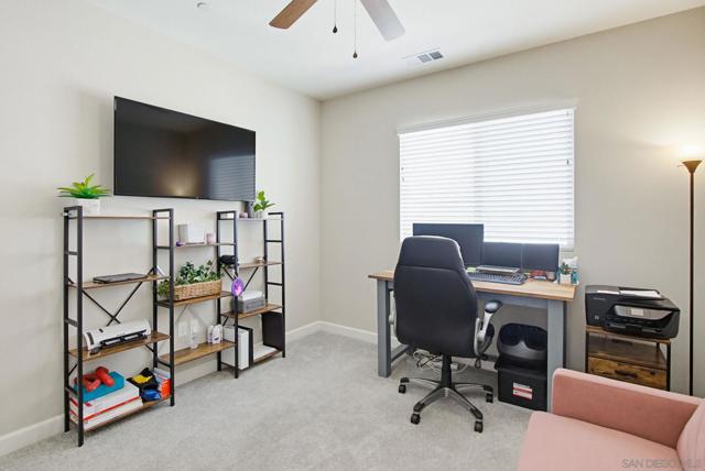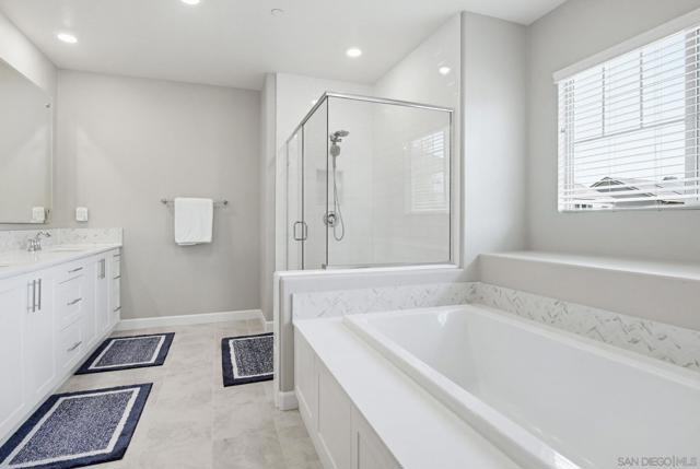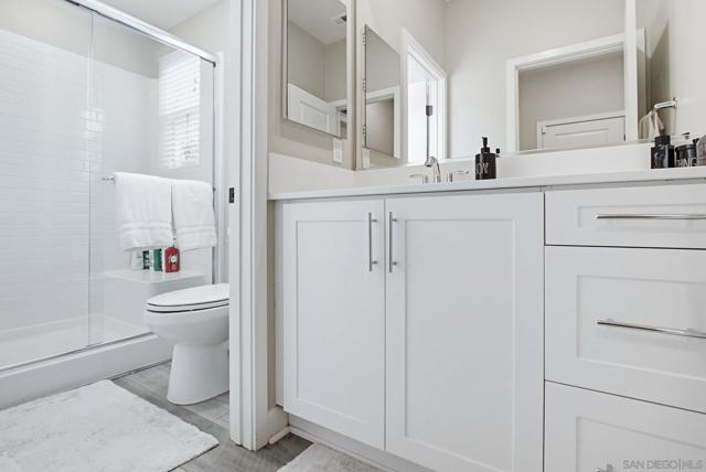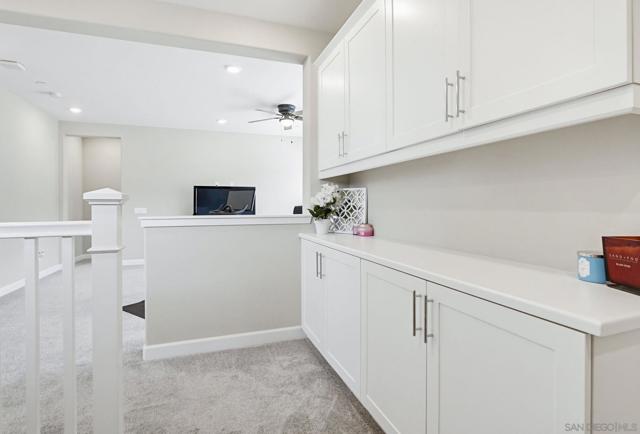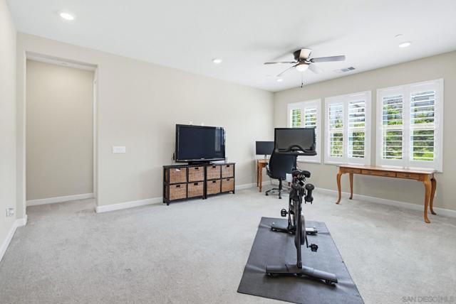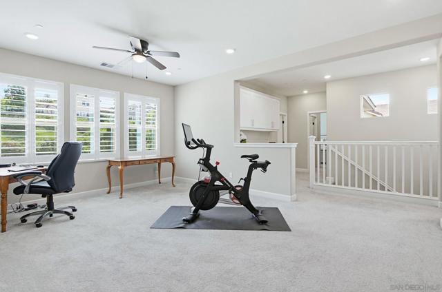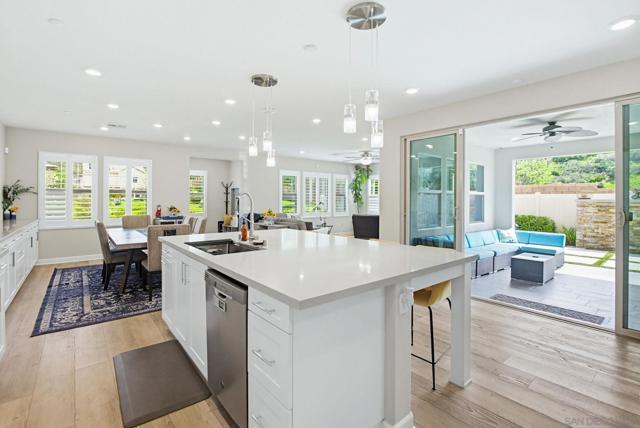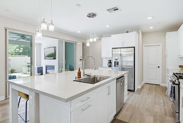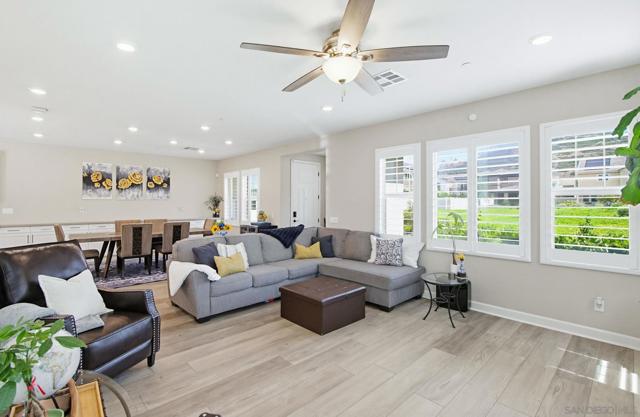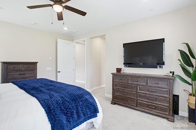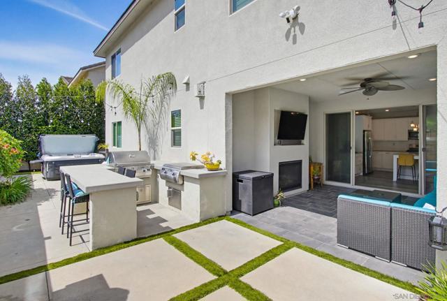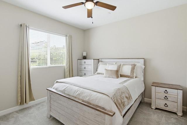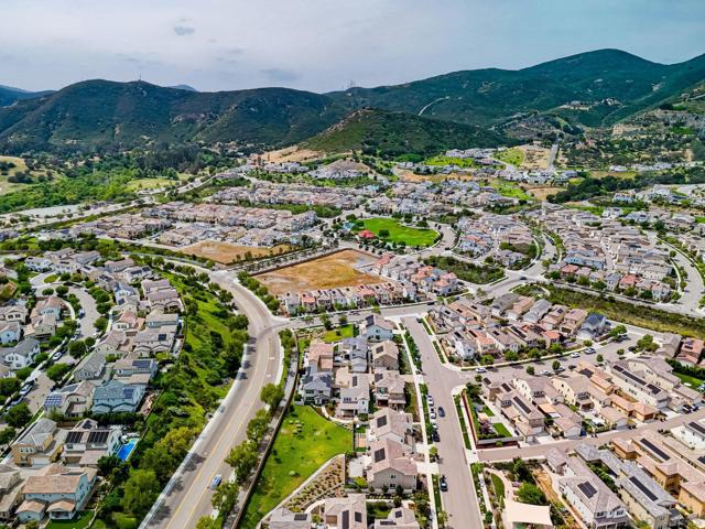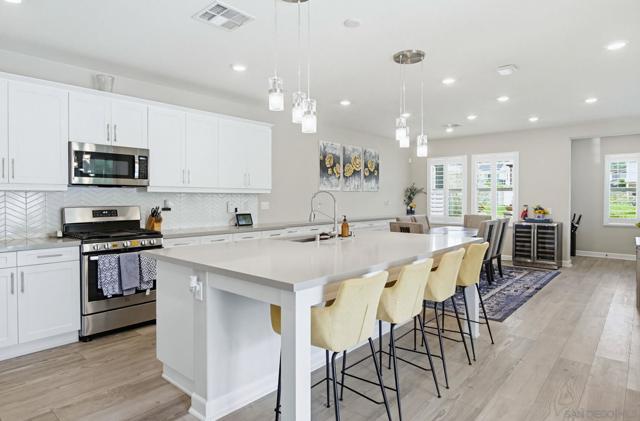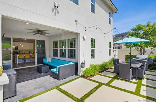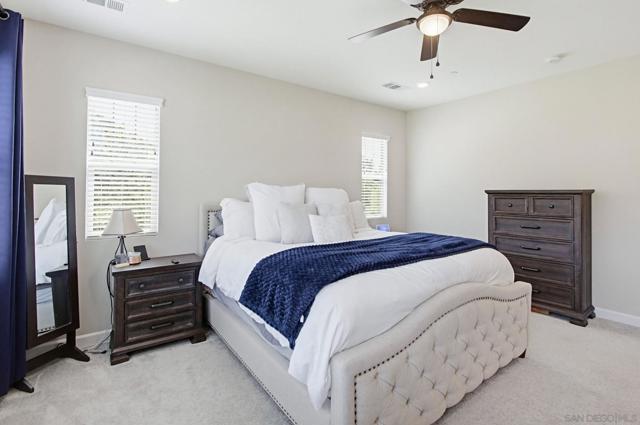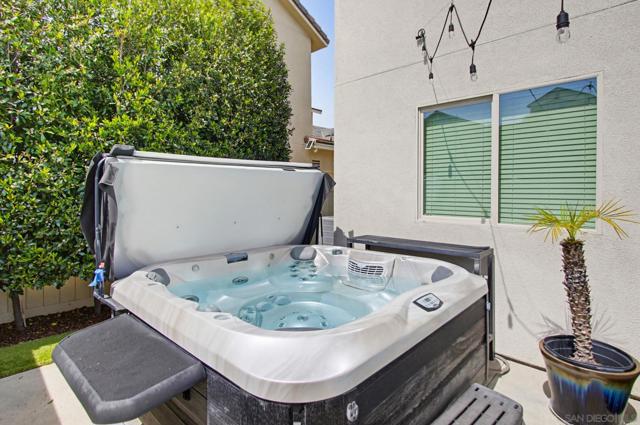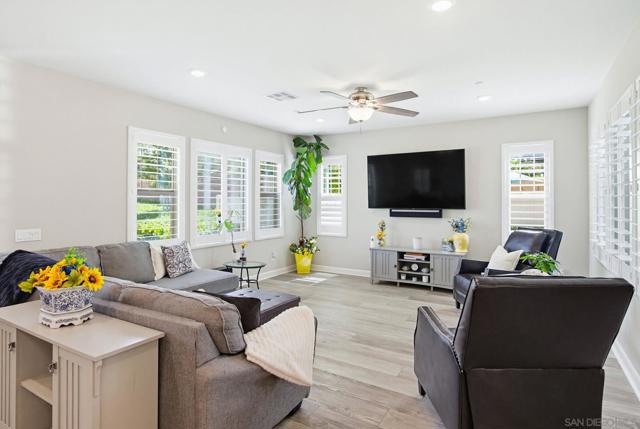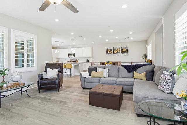 Beautifully maintained 4-bedroom, 3-bath residence tucked away in a private Harmony Grove setting, offering serene open-space & lush greenery views. Over $130,000 in seller upgrades. Thoughtfully landscaped entry & welcoming pathway set the tone for the home’s inviting interior. Built in 2019, this highly sought-after open-concept floor plan seamlessly blends comfort & functionality—ideal for both everyday living and effortless entertaining. The expansive kitchen serves as the heart of the home, featuring a large quartz island, stainless steel appliances, a pantry closet, abundant cabinetry, a breakfast bar & a dedicated dining area. The kitchen flows into the spacious living room & extends to a covered California room, creating a true indoor-outdoor living experience. The entertainer’s backyard is fully finished w/ a built-in barbecue, water feature, hot tub, & multiple seating areas—all with no neighbors behind, offering exceptional privacy. A downstairs bedroom & full bath provide versatile living options, perfect for guests, a home office, gym, or multi-generational living. The flexible floorplan continues upstairs with an open loft space, 2 additional bedrooms, full hallway bathroom & the primary bedroom & bath. This space showcases a large bedroom filled with light, walk in closet, dual sinks in the bathroom & a separate soaking tub/shower. Additional features include AC, 28 owned solar panels & community pool, parks & walking trails. Turnkey, private, & thoughtfully designed for modern living, this Harmony Grove home truly checks every box.