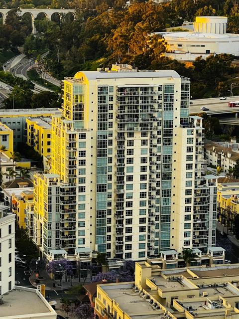 Welcome to Discovery at Cortez Hill by Bosa Development—one of downtown San Diego’s best values in full-service high-rise living. Ideally positioned on a quiet, tree-lined street, this east-facing residence is filled with natural light through expansive floor-to-ceiling windows, capturing tranquil views of the surrounding hills and treetops. Offered furnished for a true turnkey experience, this move-in ready home blends comfort and functionality. Continued in supplement below.... Highlights include a spa-inspired soaking tub, cozy gas fireplace, spacious walk-in closet, and a thoughtfully designed second bedroom featuring a built-in office and additional storage. Entertain with ease thanks to the wine fridge and enjoy indoor-outdoor living on the oversized private balcony. Elegant plantation shutters throughout add warmth and timeless style. Perched above downtown, Discovery is a landmark community in the highly desirable Cortez Hill—known for its peaceful atmosphere while remaining just minutes from the energy of the city. You’re only a short walk to Little Italy and Balboa Park, offering the perfect balance of urban convenience and neighborhood charm. Residents enjoy a full suite of resort-style amenities, including a 24-hour attended lobby, on-site management, fitness center, business and conference facilities, and a beautifully designed entertainment lounge. The elevated 10th-floor amenity deck features a heated lap pool, spa, BBQ areas, sauna, and steam rooms with full locker facilities. Secure gated parking, video surveillance, bicycle storage, and a private storage cage add everyday convenience and peace of mind. HOA dues include water, gas, and internet. Additionally, Cortez Hill residents benefit from the City’s highly affordable “F” permit parking program, offering convenient street parking for approximately $15 per year.
