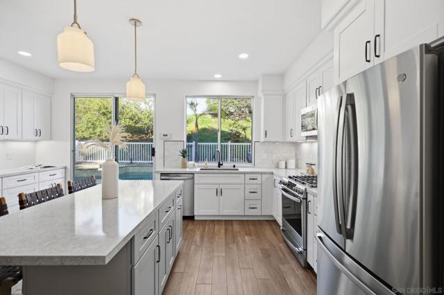 VALUE RANGE PRICING $1,598,000-$1,625,000 Located in a highly desirable school district, with PAID SOLAR + POOL, solar heated pool and spa! Beautifully upgraded and maintained residence offers the perfect San Diego indoor outdoor living. A lovely back yard to cool off on summer nights, host, and enjoy San Diego's beautiful year round weather. The spacious living areas are ideal for both everyday living and entertaining. The kitchen features ample cabinetry and generous counter space and flows seamlessly into a family room, media center, complete with a full gas fireplace. Downstairs tile flooring offers durability and style, while new carpet throughout the upstairs adds warmth and comfort. Fresh exterior and interior paint, light fixtures throughout, make this home truly move-in ready. Upstairs, the luxurious primary suite is a true retreat with a spacious walk-in closet, deep soaking garden tub, separate shower, and double sinks. Three additional upstairs bedrooms. An incredible value for this zip code -- opportunity & location!!