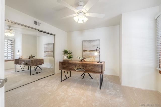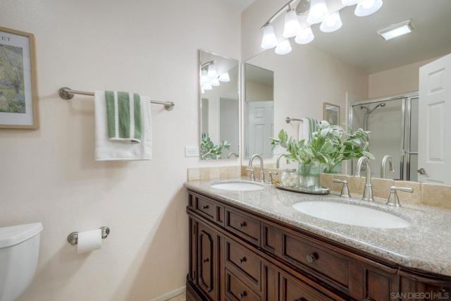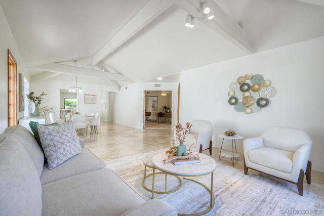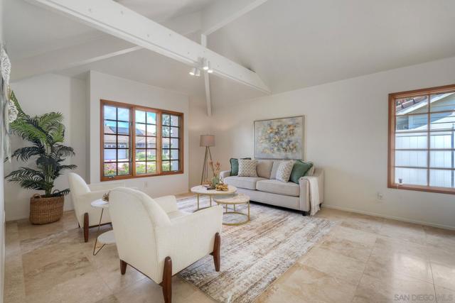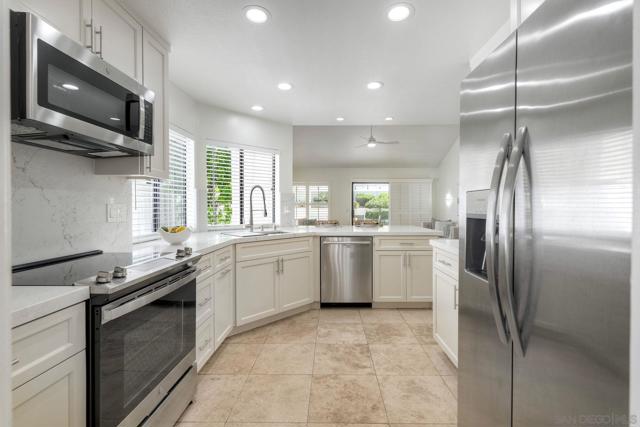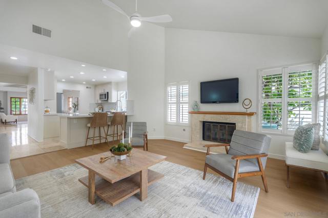 Welcome home to this beautifully updated single-level gem, ideally situated on a quiet cul-de-sac in the heart of Rancho Bernardo. From the moment you step inside, you’re greeted with an abundance of natural light, soaring vaulted ceilings, and elegant travertine flooring that create a bright and inviting atmosphere throughout. The thoughtfully recently remodeled kitchen is the heart of the home, featuring stunning quartz countertops and backsplash, stainless steel appliances, a large deep sink, and ample storage—perfect for both everyday living and entertaining. Just beyond, a cozy custom fireplace adds warmth and charm to the attached family room. This spacious four-bedroom home offers comfort and functionality, including beautifully remodeled bathrooms with custom tile and granite finishes. Additional highlights include brand new carpeting, a whole house fan, air conditioning, plantation shutters, generous attic space, a newerR water heater, and extra storage in the garage—ensuring both convenience and peace of mind. Step outside to your own private patio retreat, complete with a patio cover—an ideal setting for relaxing, dining, or enjoying San Diego’s year-round sunshine. With its prime location, thoughtful upgrades, and welcoming feel, this Rancho Bernardo home is ready to be enjoyed.