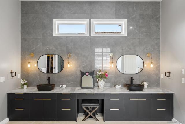 This exceptional single-story home in the prestigious Stonebridge community of Scripps Ranch has been meticulously renovated with over half a million dollars in premium upgrades. Designed with contemporary elegance and energy efficiency in mind, the home features smart home technology for effortless control of lighting, climate, and security systems. The gourmet kitchen is a chef’s dream, showcasing custom cabinetry, natural stone countertops, a large waterfall island, and top-of-the-line stainless steel appliances. A state-of-the-art solar system and energy-saving features throughout the home add to its sustainability and value. Set on an expansive 27,000+ sq ft lot, the property offers a private pool, serene canyon views, and beautifully landscaped outdoor living spaces ideal for entertaining or unwinding. Nestled in a quiet, upscale neighborhood yet conveniently close to Costco, shopping, dining, and major highways, this home perfectly balances luxury, comfort, and everyday convenience.