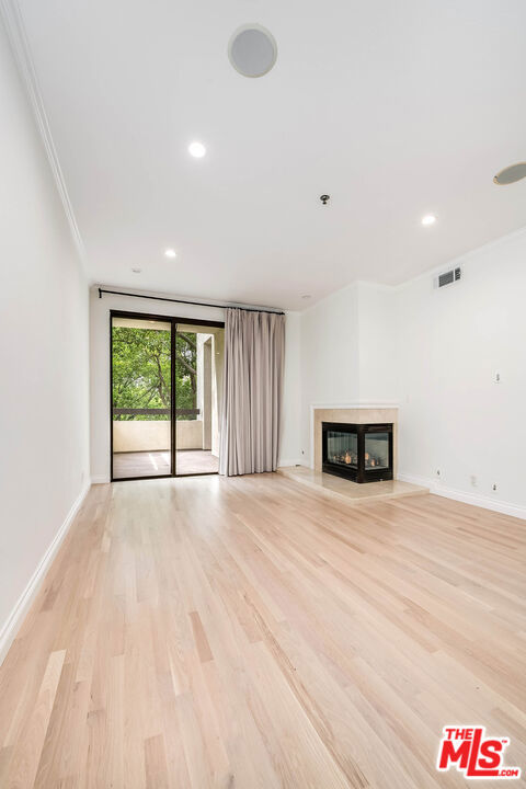 Incredible rare opportunity to lease one of the larger 2 bedroom units with an outdoor balcony. This unit was just extensively renovated. Beautiful hardwood floors welcome you to a large kitchen with breakfast area, refinished cabinets, quartz countertops, and new hardware. The dining and living areas feature high ceilings, built in cabinetry, and green views. The living room has access to the large wrap around balcony. The primary bedroom features a working fireplace, custom closet inserts and brand new bathroom with dual vanities, quartz countertops, tub and large shower with built in bench and frameless glass shower door. Secondary bedroom is sizable and has access to the balcony. Updated secondary bathroom. Inside Laundry. No expense was spared. 2 side by side parking spaces with plenty of guest parking, 24 hour guard gated, 4 pools, barbecue areas, recreation room, gyms, pickle ball and tennis court, dog walking path and well manicured lawns.