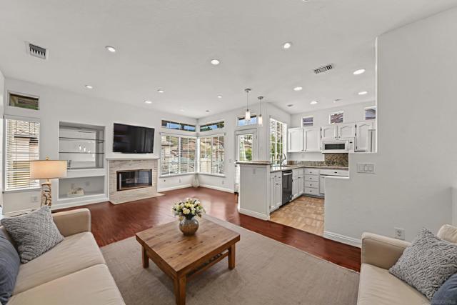 Beautiful corner end unit offering 2 bedrooms, 2 bathrooms, and 1,082 square feet of comfortable living space with stunning views of the mountains and foothills of Poway. This light filled home features an open floor plan, upgraded hardwood laminate flooring stairs, tiled bathrooms, elegant molding details, and a refinished fireplace that adds warmth and character. Enjoy the large private balcony, perfect for relaxing or entertaining while taking in the gorgeous natural views. The spacious primary bedroom, oversized 1 car garage with closet and extra storage, and peaceful setting make this home especially inviting. The well maintained community offers a resort style heated pool, spa, and ample guest parking. Located in the highly regarded Poway Unified School District and just minutes from Carmel Mountain, Scripps Ranch, Poway, I 15, and SR 56, this rarely available end unit also backs to a serene hillside with hiking trails, natural landscape, and private patios. *Some images have been digitally altered. Beautiful corner end unit offering 2 bedrooms, 2 bathrooms, and 1,082 square feet of comfortable living space with stunning views of the mountains and foothills of Poway. This light filled home features an open floor plan, upgraded hardwood laminate flooring stairs, tiled bathrooms, elegant molding details, and a refinished fireplace that adds warmth and character. Enjoy the large private balcony, perfect for relaxing or entertaining while taking in the gorgeous natural views. The spacious primary bedroom, oversized 1 car garage with closet and extra storage, and peaceful setting make this home especially inviting. The well maintained community offers a resort style heated pool, spa, and ample guest parking. Located in the highly regarded Poway Unified School District and just minutes from Carmel Mountain, Scripps Ranch, Poway, I 15, and SR 56, this rarely available end unit also backs to a serene hillside with hiking trails, natural landscape, and private patios. *Some images have been digitally altered.