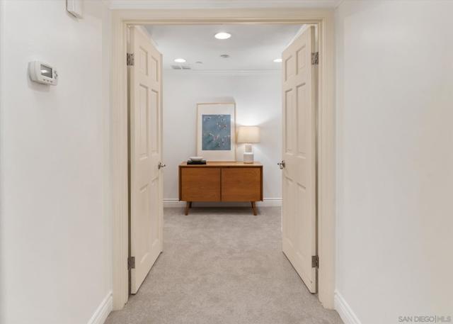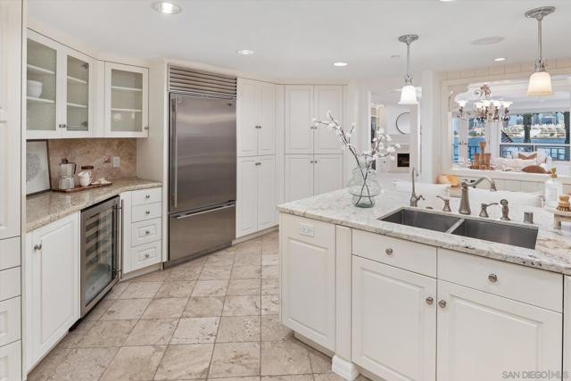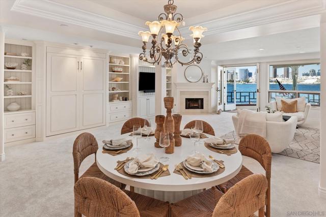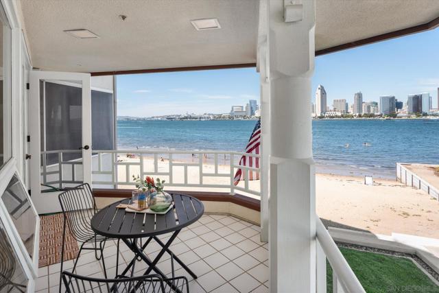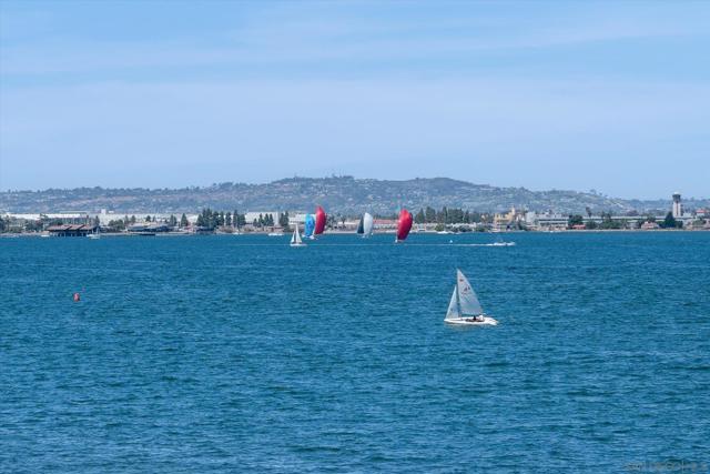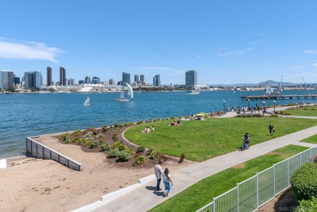 "No Kidding" panoramic full-on-water views of San Diego Bay & the Downtown Skyline. Gorgeously appointed with high-end designer finishes and textiles. SubZero, Dacor and Wolfe appliances. Luxurious & spacious primary bathroom with lovely built-in cabinetry, walk-in closets and ample storage. Beautiful tiled walk-in shower. Built in cabinetry thru-out with tastefully hidden Murphy bed in living room and new premium carpet. Exquisite marble flooring in half bath. Absolutely amazing water views from the kitchen, dining & living rooms. Enjoy fireworks, ships and boats saililng by from your covered patio terrace as well as having full access to the fun sandy beach and grass lawn right outside your unit. Hop on the ferry to the Gaslamp, Rady's Shell, Padres PETCO park, Seaport Village & Port of San Diego. Stroll to Coronado restaurants & shopping. The Landing offers a wonderful outdoor heated pool, fitness center, lovely gardens & landscaping. 2 underground parking spaces right next to the elevator. Truly an opportunity of a lifetime! This is an exceptional home with breathtaking views that rarely comes up on the market. A stunning & rare beauty! This is truly an amazing place to live. The full panoramic views of San Diego Bay are absolutely breathtaking and seductive! Enjoy watching ships and boats sail through the harbor from your private terrace. Hop onto the ferry for dining & shops at the famous Gaslamp, or enjoy some fantastic live music entertainment at the outdoor Rady's Shell or take in a San Diego Padres game at PETCO park. Easy peezy because it is all right there in your backyard. This luxurious unit has gorgeous finishes. Wait till you see the stunning marble flooring in the half bath. BEEE-U-TI-FUL! The primary bathroom boasts a beautifully tiled walk-in shower, lovely cabinetry with ample storage and walk-in closets. New carpet and a Murphy bed tastefully built-in to the living room cabinetry. The Landing offers a heated outdoor pool right on the water and a fitness center, meeting rooms and lovely landscaped grounds including a gorgeous rose garden outside the entrance. 2 parking spaces are located right as you come out of the elevator in an underground garage. This is truly a very special place. The views are intoxicating!