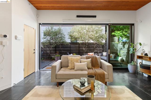 An oasis tucked amidst the bustle of West Berkeley’s hip Oceanview neighborhood, this 3-BR 2.5-bath home warms crisp modern design with the glow of natural wood inside and out. Natural light fills all 1413 square feet, thanks to multiple skylights, smartly screened windows designed for privacy from outside without sacrificing one sunbeam, and a wall-to-wall nano door opening the main living area to the private backyard. Living is efficient and effortless with radiant heat, polished concrete and wood floors, Nest system, tankless hot-water, and a whole-house fan. Enter through your generously sized garage or the keyless entry front door; enjoy the fun of the drop-down projector screen on the main level, or escape to the cozy loft-landing upstairs leading to three bedrooms, including your spacious primary suite. 2010 9th Street was built in 2013 by Baran Architects, one of three “site condos” – fully detached homes, each with its own garage and individual fenced yard, on one deep 6500-square-foot lot, providing the advantages of single-family living with a low HOA fee. All steps from 4th Street shops, the San Pablo corridor of restaurants & cafés, the Berkeley Marina and Bay Trail. Easy access to 580/80, N. Berk BART, and great schools. Zero pest, sewer compliant, exempt from BESO.