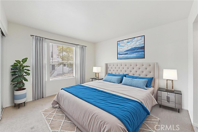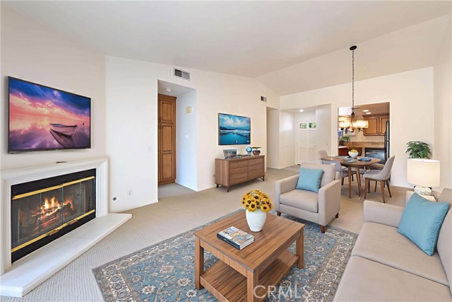 Welcome to this inviting single-level condo in the highly desirable Los Portillos community. This upper-unit home features two bedrooms and two bathrooms, with a bright, open layout that makes everyday living easy and enjoyable. The living room is warm and welcoming with plenty of natural light, classic shutter blinds, and a cozy fireplace that’s perfect for relaxing nights in. Just off the kitchen is a spacious dining area—great for family dinners or entertaining friends. The primary suite feels like a retreat featuring a walk-in shower and a large vanity. The second bedroom and bath are thoughtfully set on the opposite side, offering comfort and privacy for guests or family. You’ll also love the convenience of an in-garage laundry, a private garage, and an extra carport. Step outside and enjoy the palm tree–lined pool and spa right in the community. Plus, you’re just minutes from shopping, dining, and everything Rancho Santa Margarita has to offer. As part of the Samlarc Association, you’ll also get access to resort-style amenities—multiple pools, tennis and pickleball courts, a beach club, and so much more. This home makes it easy to embrace the Southern California lifestyle! Some rooms are virtually staged.