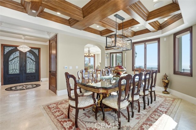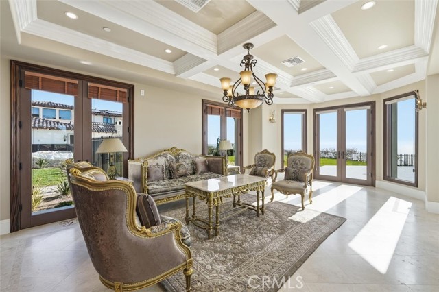 This special brand-new golf estate is a true gem with unobstructed Pacific Ocean and Golf Course Views within a private guard secure community. Introducing a new era of coastal sophistication in this new 5 bedroom with 5 ensuite bathroom estate, perfectly positioned within the prestigious Estates at Trump National Golf Course in Rancho Palos Verdes. Spanning nearly 5,000 sq. ft. of meticulously curated living space, this architectural masterpiece situated on a dream lot captures sweeping panoramic views of Trump Golf Course, the Pacific Ocean and beautiful Catalina Island from nearly every vantage point. Step through grand mahogany doors into a world defined by craftsmanship and comfort. Crema Marfil stone floors, alder cabinetry, and oak wood accents complement three elegant gas fireplaces in the living room, den, and primary suite which leads to a large primary bath with jacuzzi tub and walk in steam shower. The designer kitchen is a chef’s dream, featuring granite slab countertops, a Wolf 6-burner range with griddle, Sub-Zero refrigerator, large wine fridge, dual sinks, two dishwashers, and a custom walk-in pantry with pull-out drawers. Designed for seamless indoor-outdoor living, the residence transforms to an entertainer’s paradise, complete with a lap pool, jacuzzi, outdoor fireplace, and fire pit set against the backdrop of glowing Pacific sunsets and 6+ Trump Golf Course tees enjoyed from the yard and multiple balconies. Every modern amenity is at your fingertips, including a main floor guest half bathroom for convenience, a private elevator ensuring effortless access between the two levels, built-in speakers and lighting control, solar energy, dual-zone AC, and an expansive 1,006 sq. ft. 4-car garage. Located in a 24-hour guard-patrolled community, this new construction residence offers the ultimate blend of privacy, security, and timeless elegance. There is luxury and then there is beyond luxury. Schedule your private tour today and experience the unparalleled luxury of life at Trump Estates.