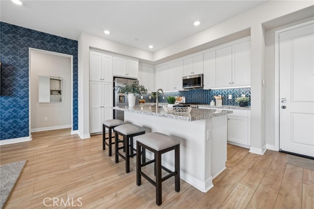 Welcome to this stunning 3 bedroom, 2 bath condo located in the highly sought-after FivePoint community of Valencia. Tucked away in an incredible, private location, this former model home showcases designer upgrades and custom touches throughout. Step inside to a light and bright open floor plan, enhanced by windows throughout that fill the home with natural light. Luxury vinyl flooring throughout the main living areas. The oversized kitchen features granite countertops, custom backsplash, stainless steel appliances and great cabinet space, all seamlessly opening to the spacious dining and living areas. Enjoy wide-open views from your private balcony, which also provides an additional storage closet. This property also includes a tankless water heater and solar! Large indoor laundry room. Rare 2 car side-by-side garage with EV charger. Residents of this vibrant community enjoy exceptional HOA amenities, including a resort-style pool and spa, modern clubhouse, weekly farmers markets, community garden and miles of scenic walking paths. Conveniently located just off the 5 Freeway, this home offers easy access to premier shopping, dining, and entertainment. This is a rare opportunity to own a beautifully upgraded home in one of Valencia’s most desirable communities.