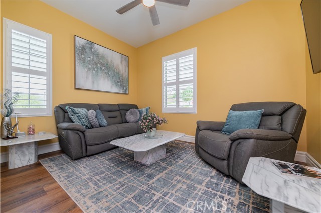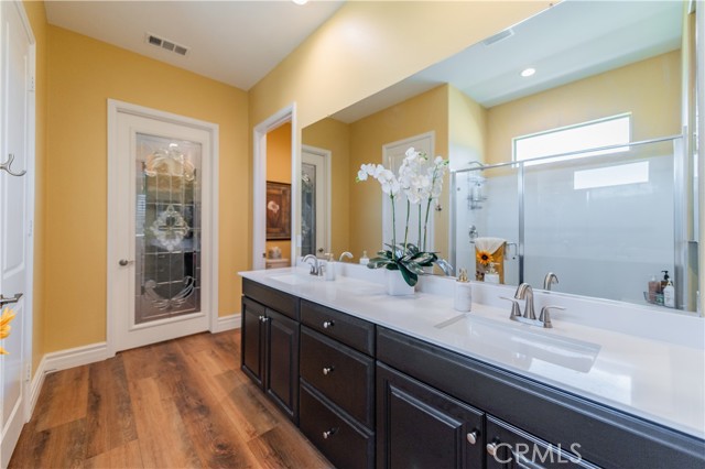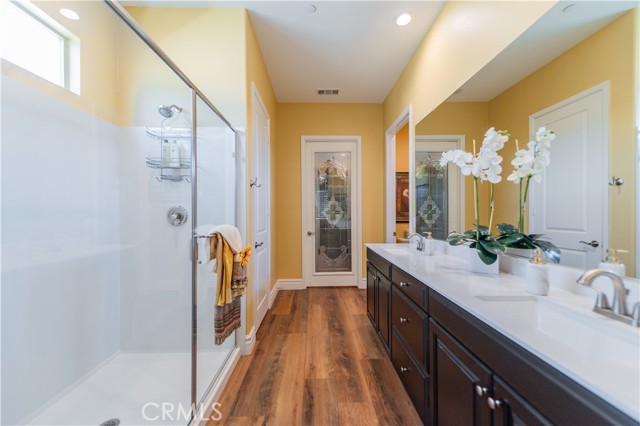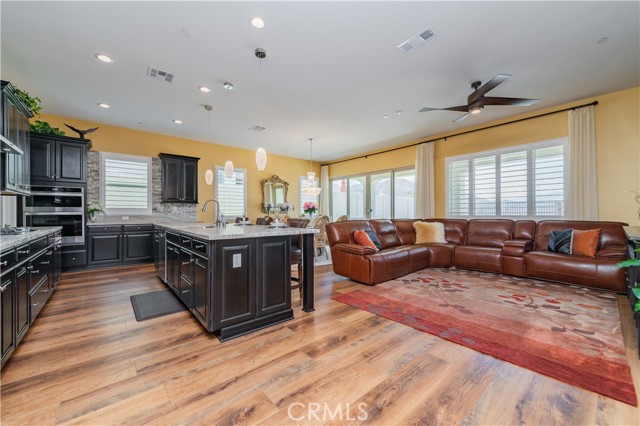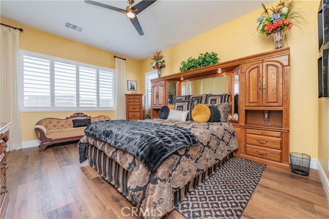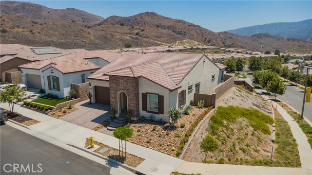 Single Story Masterpiece High Above the Hills with $250K+ Upgrades. 3 Bedrooms | 2 Baths | 2 Car Garage | 1,902 Sq. Ft. | Lot Size 8,285 Sq. Ft. | Built in 2022. Single story masterpiece sits high above the hills on a 8,285 square foot corner lot within prestigious gated 55 plus community of terrain. No expense is spared on this luxurious 3-bedroom home with over $250,000 worth of upgrades! From custom wood floors, 4-inch window shutters, designer full stone backsplash and espresso cabinets in the kitchen, wood paneling on family room walls, crystal chandelier and pendants, custom doors at entry, closet, pantry and much more. The extensive list of upgrades continues to the exterior with Arizona style landscaping in the front with exotic succulent plants, rocks, lighting pavers throughout covering entire driveway. Beautiful travertine flooring extends the California room to a spacious backyard with low maintenance landscape which offers panoramic view of distant mountains and city lights. Attached 2 car garage with epoxy flooring and custom built in storage cabinets. This gorgeous home is also equipped with smart home technologies including security alarm and paid solar panels. The fitness facility and clubhouse in the community offers nothing short of five-star resort amenities from indoor/outdoor pools, cabana, exercise gym, sauna, private massage rooms, bar, meeting rooms, BBQ, tennis and pickle-ball courts and more. Welcome home!