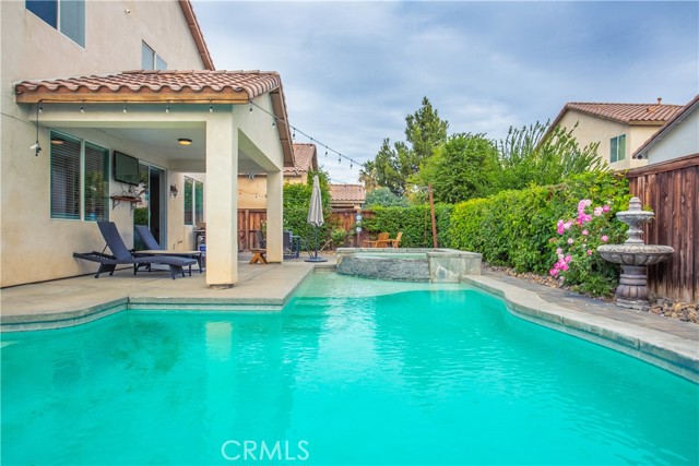 This fully equipped, 5-bedroom, 3.5-bath home is being sold furnished, right down to the kitchen essentials. Set in a highly desirable Coachella neighborhood, the home welcomes you with a spacious open layout that blends the living, dining, and kitchen areas into one inviting space—perfect for hosting. The kitchen features granite surfaces, a breakfast bar, and sleek stainless-steel appliances. The flexible floor plan includes one bedroom downstairs and four upstairs, offering comfort and privacy for larger groups. Out back, enjoy your own resort-style retreat with a heated pool, spa, and a cascading waterfall. The covered patio, complete with a TV, creates the ideal setting for lounging and entertainment. A gated entrance and easy-care landscaping enhance both security and convenience. Located near popular restaurants, shopping, and festival venues, this property is ideal as a full-time residence, weekend getaway, or lucrative rental investment. No HOA.
