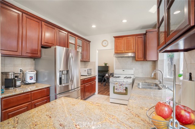 430 W Walnut Avenue is a beautiful traditional home located in one of the sought after neighborhoods in Monrovia. This modern spacious two-story home is presented in turn key condition. Nestled on a quiet street with only four units, this home is only a few minutes from old town Monrovia, close to schools, parks, grocery markets, restaurants, shops and minutes' drive to the restaurants and shops in Arcadia. Built in 1990 with an L shaped backyard, this cozy home offers 1990 sqft living space with three bedrooms, three baths and one office/study, which can be used as another bedroom if needed as the closet and a full bath are just across the hallway. Entering from the front door, the high-ceiling living room greets you to the formal dining area. The kitchen is conveniently located next with granite counter tops and breakfast bar open to the family room. The French sliding doors in the family room with gas operated fireplace, leads out to the spacious back patio/yard with fruit trees. The L-shaped backyard is big enough to host BBQ parties for entertaining. Upstairs, the current owner tastefully converted the middle bedroom into a walk-in closet for the primary en-suite (the seller will show how to convert it back to be a bedroom if needed). So, there are two spacious en-suites upstairs with linen closets and space for a desk on the hallway. The primary suite, bath with double sink vanity, separate shower/bathtub/toilet, also has access to the south facing balcony. The 2-car attached garage is spacious with lots of storage space and cabinets as well as the hook-up for washer and dryer. The water softener system is also in the garage. The entire upstairs is carpeted and downstairs with laminated hardwood floors. The roof was replaced a year ago. This is a sweet and well kept home with bright natural light. The self-managed HOA-Walnut Ave. HOA (4 families have taken turns to collect and pay the bills for trash and water, backflow check and occasional driveway improvement) is incredibly low in maintenance for only $125 per month. Don't miss this opportunity to own this sweet home in turn-key condition in a very peaceful, friendly and safe location in Monrovia.