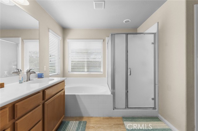 Charming two-story home located in the desirable Sundance community. This inviting 3-bedroom, 2.5-bathroom residence boasts 1,727 square feet of well-designed living space. Step inside to discover an open-concept floor plan that seamlessly connects the kitchen, dining, and living areas. The remodeled kitchen is a chef's dream, featuring sleek quartz countertops, new cabinets, a spacious island with a farmhouse sink, and ample prep space. The adjoining living room offers cozy comfort with luxury vinyl flooring and a warm fireplace, while plantation shutters throughout the downstairs add both charm and privacy. Upstairs, you'll find a conveniently located laundry room with storage cabinets for added functionality. The primary suite is a true retreat, offering two spacious walk-in closets, dual vanity sinks, and a separate soaking tub for ultimate relaxation. The backyard provides a serene outdoor space with plenty of room to entertain, garden, or simply unwind. Fruit trees lining the fence add both beauty and bounty to this inviting space. Located near schools, parks, and shopping centers, this home offers comfort, style, and convenience. Don’t miss the opportunity to make it your own!
