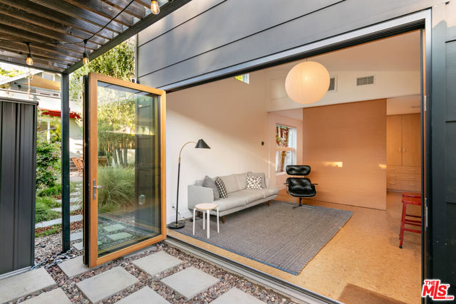FOR LEASE: A truly exceptional and rare offering, a stunning Craftsman residence PLUS an architecturally striking ADU both executed with a beautiful level of design and cohesion. Set on a beautiful tree-lined street, amongst other historically charming homes, this 2-story Craftsman home in Highland Park, has gone through a thoughtful restoration preserving its style, while offering a design forward renovation with grounds that unfold like a private design showcase. The front residence offers a beautiful floorplan, featuring 3 perfectly sized bedrooms upstairs and 2.5 exceptionally-designed baths. Natural light abounds! The main level unfolds into an open, airy living space anchored by a stunning chef's kitchen with an oversized island, custom cabinetry, and rare LaCantina collapsible glass doors and windows that fully open the space to the outdoors complemented by a sculptural red metal awning that artfully filters sunlight while providing shade both functional and visually distinctive. Upstairs, the bedrooms provide a peaceful retreat, the sun-drenched upstairs bath is adorned with cheerful yellow Fireclay tile, and a skylight over the shower. Downstairs both bathrooms have the green Fireclay tile, the first is a half bath perfect for guests, and the other artfully-designed bath has a soaking tub, separate shower with a floor drain, and a glass door that opens directly to the back deck, creating a seamless indoor-outdoor experience. The expansive rooftop deck (approx. 26' x 15') acts as a true outdoor living room, extending the home's footprint and offering an elevated retreat for entertaining or quiet moments under the sky. Throughout, the home balances warmth, light, and architectural detail, resulting in a space that feels both elevated and effortlessly livable. The back residence, a 1-bedroom, 1-bath ADU evokes a distinctly Dwell-esque aesthetic, with soaring ceilings, collapsing LaCantina glass doors, and custom sliding cork walls that create flexible, private living spaces. Custom millwork, a built-in Murphy bed, designer kitchen, and a bathroom clad in bold green Fireclay tile elevate the space into something truly special. This is the kind of offering one searches for but rarely finds an exceptional blend of style, function, and versatility ideal for guests, income, or creative use. Extensive system upgrades, clever and hidden storage solutions throughout the house, professionally landscaped grounds, drought-tolerant native landscaping and mature citrus trees, olive trees and privacy hedging create an oasis of calm. Close to vibrant York Boulevard and Figueroa Street where you will find Highland Park's best dining and culture, including some of the neighborhood's most beloved destinations, Hippo, Joy, and Homestate, along with a variety of eclectic shops and cafes. This property stands as a one-of-a-kind opportunity refined, expressive, and worthy of the pages of Architectural Digest. The nearby Metro A Line further enhances the home's connectivity, offering easy access to Downtown LA and beyond. PLEASE NOTE: Also listed for sale