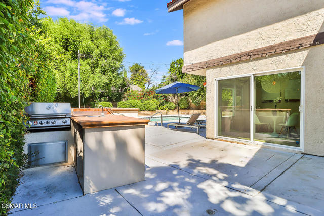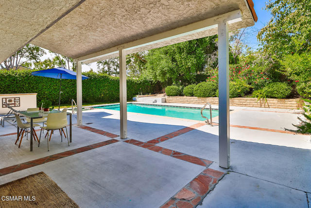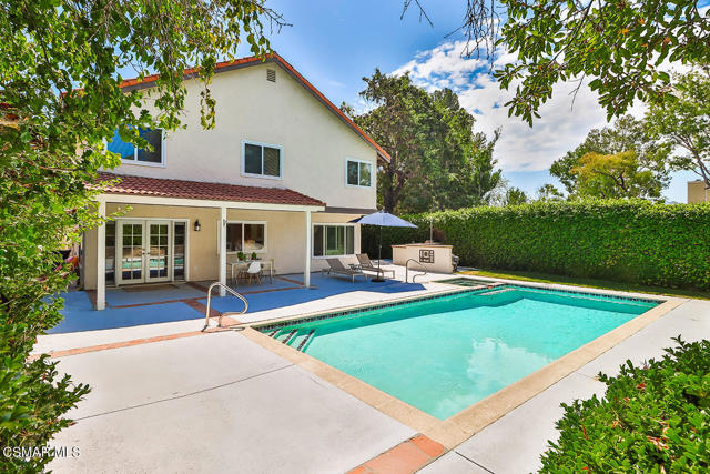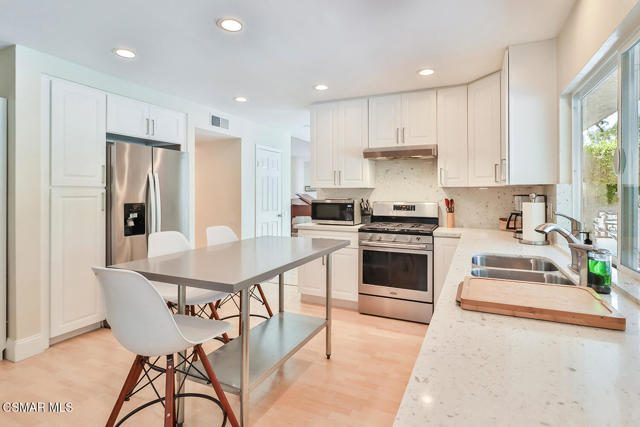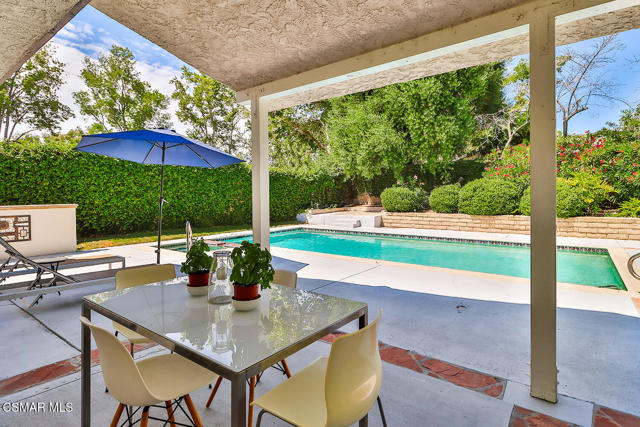 In the heart of Westlake Village, within the highly desirable Village Homes community, this beautifully updated residence is ready to welcome you home.Step inside to soaring ceilings and a light-filled living room that creates an inviting and open atmosphere. The entire downstairs has been enhanced with brand-new Pergo flooring, offering a fresh, modern aesthetic paired with durability and ease of living.The thoughtfully updated kitchen features sleek quartz countertops, stainless steel appliances, and refreshed cabinetry, creating a functional and stylish space for everyday living. Recessed lighting and updated bathrooms throughout the home add to its clean, contemporary feel.Upstairs, the spacious primary suite offers vaulted ceilings and a private ensuite bath, while three additional bedrooms provide flexibility for family, guests, or a home office. A conveniently located powder room completes the main level.Step outside to your own private backyard retreat--complete with a sparkling pool and spa that has been newly replastered and is ready to enjoy just in time for summer, along with a built-in BBQ area ideal for outdoor gatherings.Ideally located just moments from grocery stores, shopping, and a variety of popular restaurants, this home offers everyday convenience alongside a peaceful residential setting.Village Homes offers an exceptional lifestyle with amenities including a clubhouse, community pool, tennis courts, and beautifully maintained greenbelts--creating the perfect balance of relaxation and recreation.This is a rare opportunity to enjoy comfort, style, and community in one of Westlake Village's most sought-after neighborhoods--don't miss it.