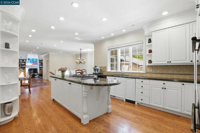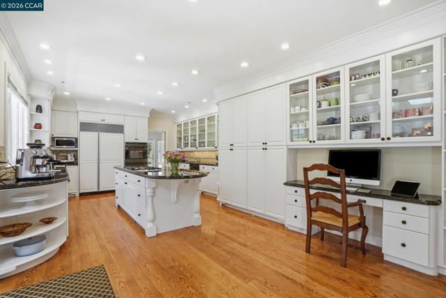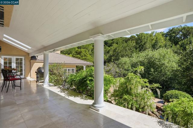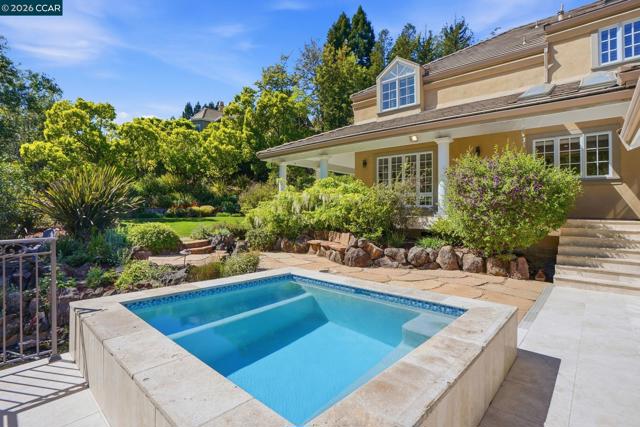 Exquisite European style estate with a very private setting in a popular gated community of Moraga. Built and remodeled with the finest finishes, this custom home features French doors leading to travertine verandas, high ceilings, hardwood floors, venetian plaster, fireplace incerts and much more. Amazing flow for a grand scale entertaining or comfortable day-to-day living. Gorgeous living and dining rooms with high ceilings & gas fireplace provide direct access to the wrap-around back porch finished in stone. The Chef's kitchen boasts white cabinetry, granite countertops, central island and two dishwashers. The comfortable family room with a fireplace and access to the private veranda is adjacent to the kitchen. There is a fantastic office with built-in cabinetry and book shelves. The property is professionally landscaped with beautiful & lush gardens, extra large spa, waterfalls, lawn and many meandering paths. You will feel like you are living at your own resort that offers solitude and beauty. Top rated Moraga schools and park are nearby.