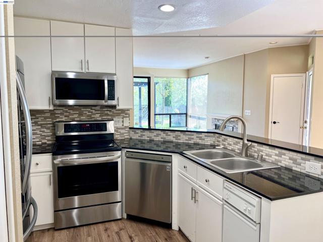 Light, bright, and private, you will fall in love with this home in highly desirable Lakemont at Canyon Lakes! Exceptional amenities - 24-hour gated entry, front yard and exterior maintenance, four pools, tennis & pickleball courts, walking paths around the lake area, and lots of views! This wonderful home comes with new flooring, baseboards, and paint throughout. The master bath has been updated, as have many of the fixtures and lighting. Open floor plan features a kitchen that is open to the dining area and living room, making for easy entertaining of family and friends. Covered patio and low maintenance back yard offers privacy, and the large windows and sliders in the living room and master bedroom bring the outdoors in. Two car garage with interior entry, single level, and there are no steps to the front door or to the backyard. Award-winning San Ramon Valley school district. Enjoy the Canyon Lakes and San Ramon lifestyle at a great value - welcome home!