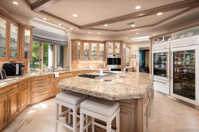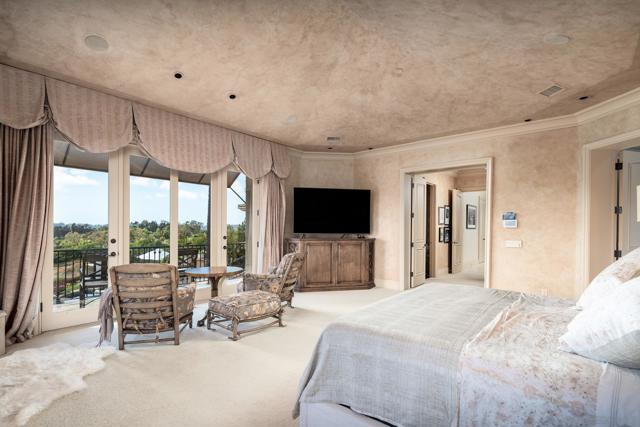 Live the luxury lifestyle on a premier view lot within the exclusive guard-gated community of The Farms in Rancho Santa Fe. Perfectly positioned to capture sweeping 270+ degree views of the newly renovated "Farms" golf course, mountains, and Pacific Ocean, this custom estate spans over 10,000 sq ft of refined living. Designed for effortless indoor-outdoor living, the home features soaring ceilings, expansive windows, and French doors that fill the interiors with natural light. A grand courtyard entry leads to elegant formal living and dining spaces, a private office/library, and a chef’s kitchen with top-tier appliances, large island, butler’s pantry, and casual dining area—opening to a warm family room and expansive veranda. The luxurious primary suite offers dual baths, dressing rooms, and a private view balcony. Four additional ensuite bedrooms and resort-style amenities—including theater, gym, wine cellar, sauna, elevator, pool, spa, and 4-car garage—complete this exceptional offering.