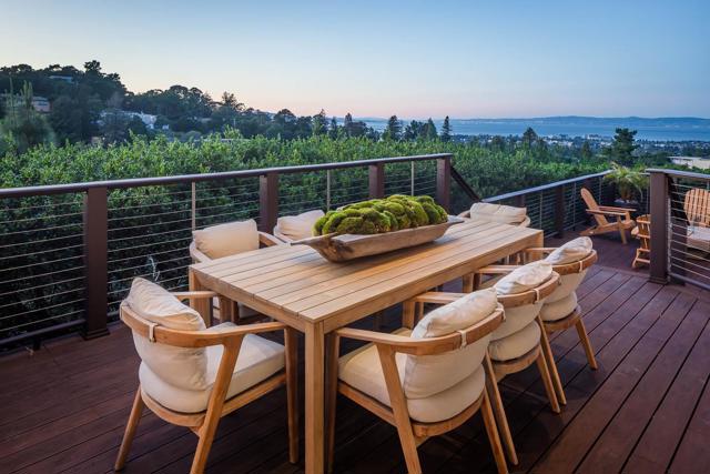Commanding sweeping views of San Francisco, the Bay Bridge, and a glittering skyline, 1340 View Haven is a contemporary Hillsborough retreat designed to showcase its extraordinary vantage point. A private tree lined setting, the home unfolds through a dramatic double-height foyer with a glass-encased staircase and suspended artistic wine display. The house unfolds to expansive, light-filled living areas framed by walls of glass blurring the line between indoors and out. A sleek, European-style kitchen is anchored by a sculptural quartz island and premium appliancesseamlessly flows into dining and family areas, all opening to view terraces designed for elevated entertaining. The house has five bedrooms with a stunning primary bedroom retreat with panoramic outlooks, private balcony, fireplace, and spa-like bath. Outside, a view-facing pool and spa, fire pit, and heated terraces create a space for year round enjoyment. Recent structural enhancements include retrofitting to the deck, foundation, and retaining walls, reinforcing both integrity and longevity.
