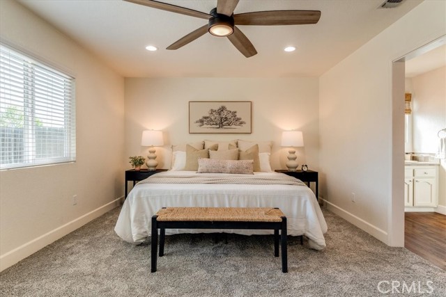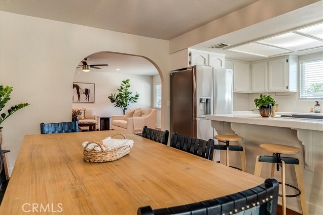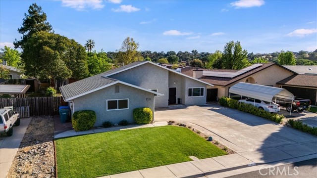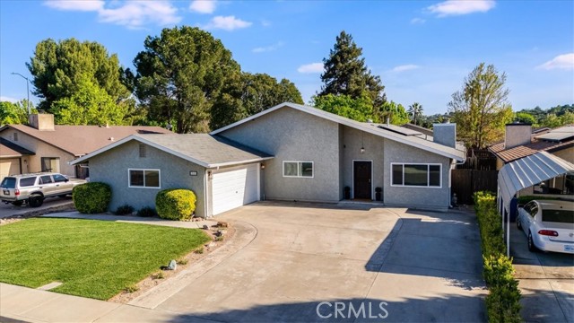 Single-level Paso Robles home with a functional layout, owned solar on NEM2, and over 1,600 sq ft on an 8,576± sq ft lot with plenty of outdoor space. The living room features a rock fireplace and natural light that carries through the main spaces.. The kitchen provides ample cabinet storage and a breakfast bar, opening to a defined dining area with a slider out to a covered patio—set up well for outdoor dining, relaxing, or get-togethers. Backyard access from dining room and one of the guest bedrooms adds to the functionality and makes the outdoor space feel connected. The yard offers room to spread out, garden, or make it your own, with two storage sheds providing additional space for tools and equipment. The primary suite includes its own bath and large walk-in closet. Two additional bedrooms are well-sized and easily accommodate family, guests, or a home office. Fully owned solar system is in place and grandfathered into the more favorable NEM2 rate structure, offering long-term energy savings and stability. A dedicated laundry room adds convenience, and the oversized two-car garage provides extra space for storage or a work area. Located near Pat Butler Elementary, Paso Robles High School, shopping, parks, and Paso Robles Golf Club, keeping both daily needs and recreation within a short distance.