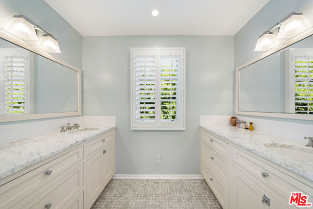 Welcome to this enchanting Mandeville Canyon country estate, tucked behind gates and set amongst majestic sycamores. This private sanctuary offers a rare blend of warmth, seclusion, and refined country traditional charm. A long, private driveway leads you into a realm where nature and elegance exist in beautiful harmony. Thoughtfully updated and completely turn key with timeless charm, the home features five bedrooms and four bathrooms, with the expansive primary suite occupying the entire upper level, a peaceful retreat among the treetops. Upon entry, you're welcomed into a light-filled living room with a double-sided stone fireplace that flows seamlessly into the dining room. French doors in both spaces invite the outdoors in, opening to an entertainer's paradise: a serene backyard framed by stacked stone, an alfresco kitchen, a glowing fireplace, and a saltwater pool. At the heart of the home, a sun-drenched chef's kitchen awaits complete with Carrara marble countertops, professional-grade appliances, and a cozy built-in banquette, perfect for morning rituals or evening gatherings. Just moments from scenic hiking trails and the charm of Brentwood Village, this is canyon living at its most idyllic. An extraordinary setting where every detail whispers peace, privacy, and possibility.