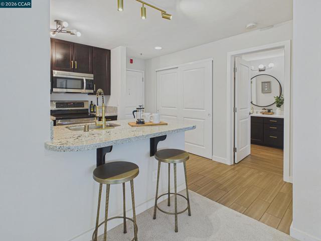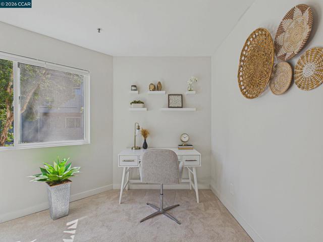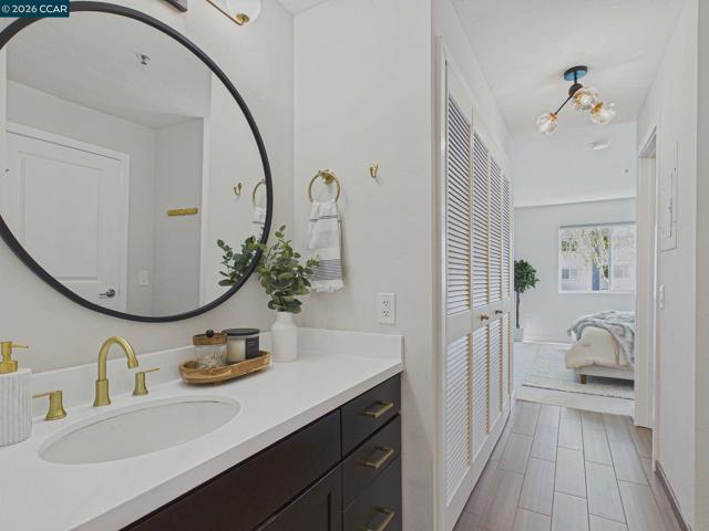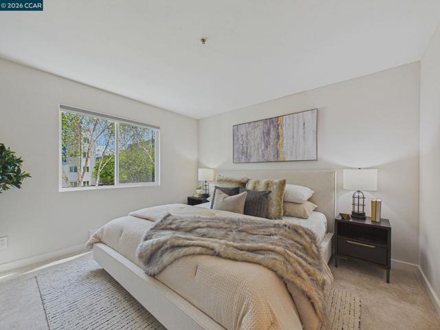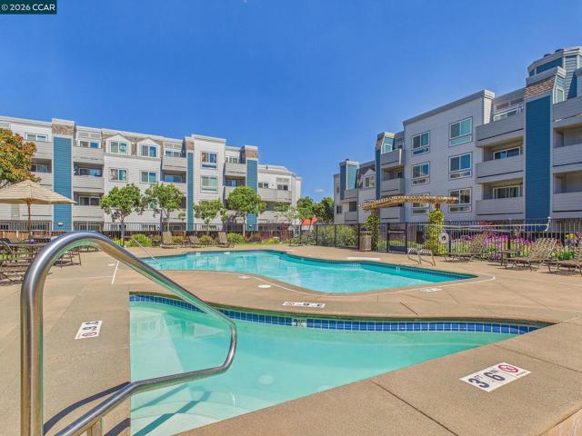 Welcome to your ideal urban retreat in the heart of Emeryville! This beautifully appointed 2 bedroom, 2 bath end-unit condo offers the perfect blend of comfort & convenience. Step inside to a thoughtfully designed layout with natural light pouring in from the newer dual paned windows. The updated kitchen with stainless steel appliances, stone countertop and brass hardware make meal prep enjoyable. Bedrooms are separated on each side of the home, creating privacy while walk-in closets offer great organization. Sip and snack on the private patio that overlooks a well-manicured courtyard that also has a storage closet. Skip visits to the laundromat with in-unit laundry! This home also includes two-car, secured covered garage spaces, an exceptional perk in this area. Beyond your front door, enjoy a plethora of community amenities: A fully equipped fitness center, swimming pool/hot tub, BBQ grassy field, massage/study rooms, clubhouse with billiard & ping pong table, kitchenette for optimal entertaining options. Located near many shopping centers, dining, UCB, movie theatres, BART, Emery Go-Round, I-80 and so much more. This is the perfect pet-friendly place to call home within a vibrant community! 3D Tour here: https://tour.giraffe360.com/6466de7b15524b66b320be5ff5665691