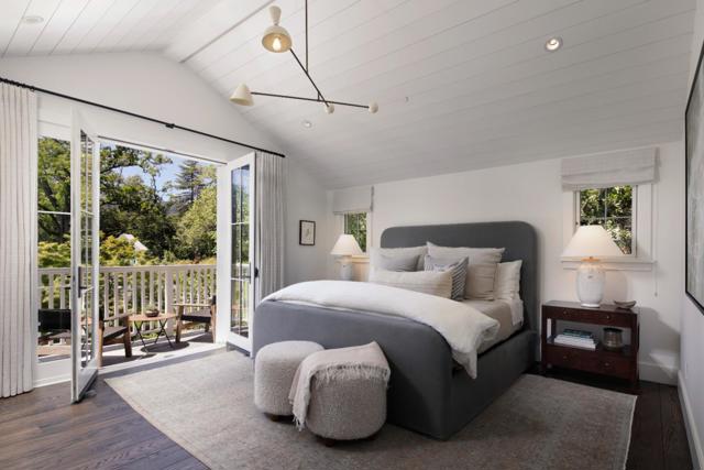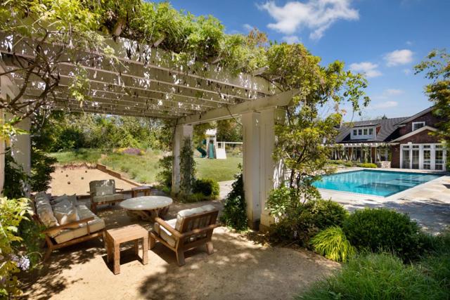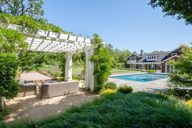 In one of the best locations in Central Woodside, easy walking distance to Town Center and acclaimed Woodside School (pre-K to 8th); this home captures California Country with East Coast Elegance with its breathtaking views of the Western Hills from the flat one-acre parcel. The open floor plan flows seamlessly for indoor/outdoor entertaining featuring a rear dining patio, built-in BBQ, 50 foot saltwater pool, bocce court, shaded pergola sitting area, spacious rear grass lawn and surrounding array of colorful gardens. Gorgeous oak hardwood floors unify the two-story home, with a comfortable family room adjacent to the chefs kitchen and large combined dining and living room, all with French Doors opening out to the sunny rear entertaining patio. The home has 5 spacious bedrooms, each with its own bath and ideally arranged for a variety of lifestyle needs. The main-level also has a separate home office. Upstairs a primary suite plus 3 additional en-suite bedrooms provide a perfect living area layout. This location offers it all: a private home and property on one of the best country lanes in Woodside while also being within walking distance to Woodside School, Town Center shops and restaurants, and all of the hiking, biking and horseback trails that make Woodside special.