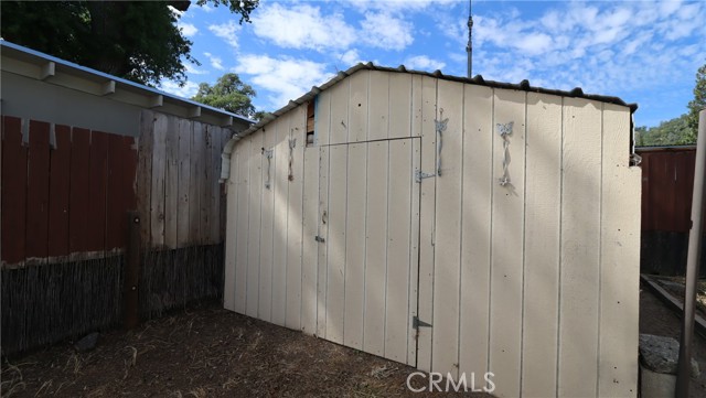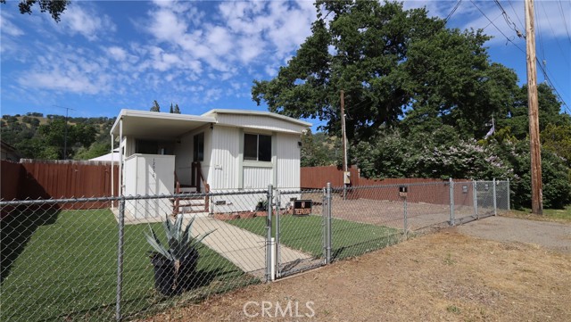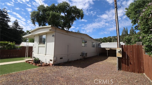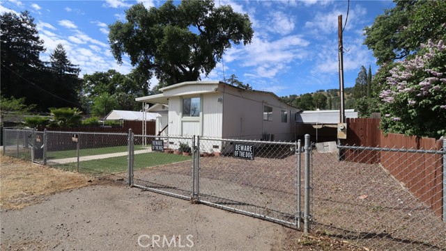 Easy Living Near the Lake with Room for All Your Toys! Set on a fully fenced, level 4,700 sq ft lot, this two bedroom, one bath single wide manufactured home with a built-on bonus room offers comfortable, low-maintenance living just minutes from Clear Lake. The 820 sq ft layout is functional and inviting, with a covered front porch and covered side patio—perfect for outdoor dining, relaxing, and enjoying the peaceful natural setting. The property is set up for fun and flexibility, featuring an above-ground pool with access decking, RV hookups with cleanout, and secure off-street parking with plenty of space for a boat or RV. A storage shed in the backyard adds extra convenience. Located within a 10-minute drive to a boat ramp and close to fishing, hiking, and local wineries, this property is ideal as a full-time residence, retirement retreat, or vacation rental. Simple, versatile living with everything you need to enjoy the lake lifestyle.