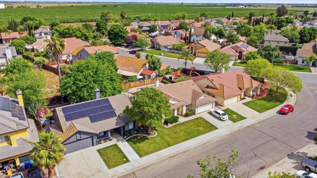 Welcome to 1876 Boalt Drive, a single-story home in the established College Greens neighborhood of Los Banos. This 3-bedroom, 2-bath residence offers approximately 1,508 sq ft of living space on a 6,400 sq ft lot. The home features an open living and dining area that flows into the kitchen, with natural light throughout. The primary suite is generously sized, the bathroom features a private bath and stall shower. The backyard offers a covered patio, dog run, and a spacious storage shed. Solar is currently on a payment plan (owned not leased); buyer may assume or seller will remove prior to closing. The A/C and water heater were both recently replaced in 2025. Located just a few blocks from Mercy Springs Elementary and close to parks, shopping, and commuter routes.