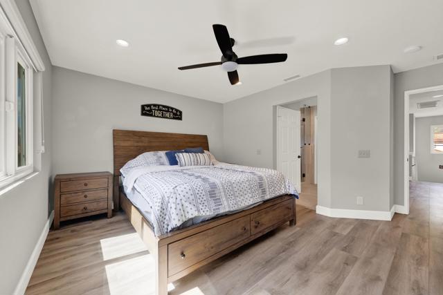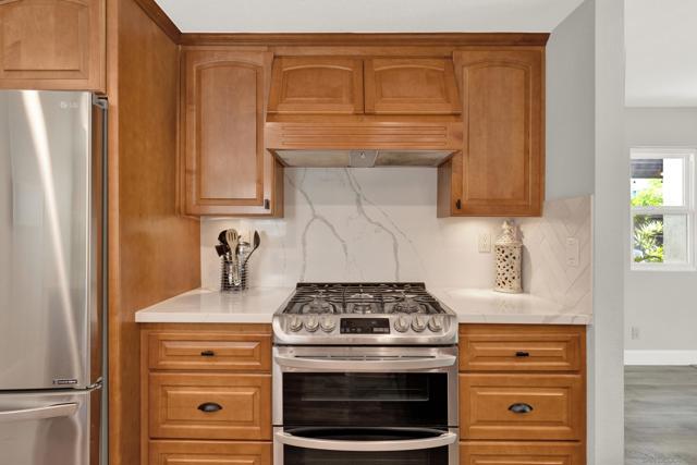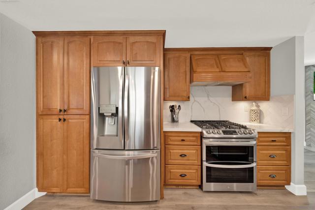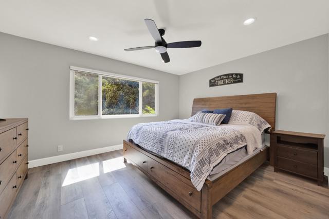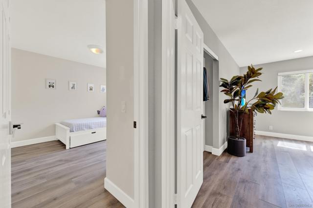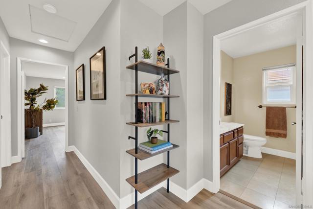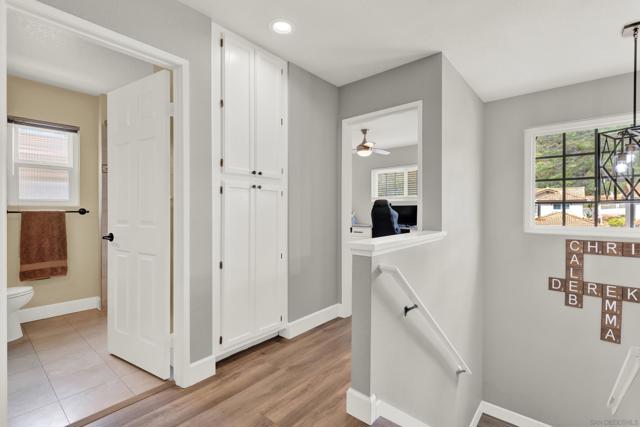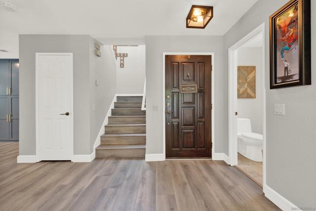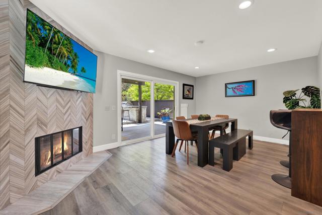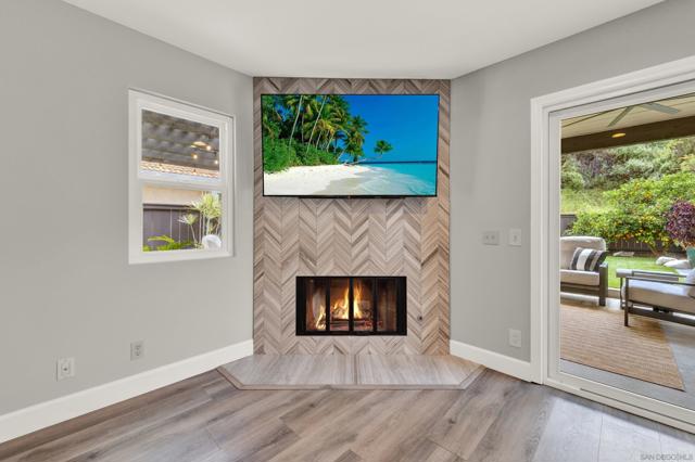 Nestled in the heart of Rancho Bernardo in the highly desirable neighborhood of Camino Bernardo, this thoughtfully upgraded residence blends comfort, style, and intentional design throughout. With no neighbors behind and backing up to open space, this exquisite home features a backyard that is an entertainer's paradise. Step outside to a beautifully curated backyard designed for both relaxation and entertaining. Enjoy low-maintenance turf, mature fruit trees, a cozy fire pit, and dual patio covers that create multiple outdoor living spaces. The fully equipped outdoor area includes a built-in BBQ and mounted TV, ideal for hosting or unwinding under the San Diego sky. Wide-plank flooring in soft grey hues flows seamlessly across the home, OWNED solar system, the HVAC system has been thoughtfully upgraded approximately two years ago, and updated dual-glazed vinyl windows throughout the home increase energy efficiency and comfort. The primary suite is a true retreat—designed for tranquility and indulgence—featuring a spa-inspired bathroom and dual closets, including an expansive walk-in and a secondary closet adorned with sleek double-sliding glass doors, blending function with contemporary elegance. Elegant built in cabinets adorn the walls of the living spaces by the garage, giving the home an elevated, yet wholesome, feel throughout. Kitchen is a chef's paradise; complete with SS appliances, a plethora of storage cabinets, soft close cabinetry, oversize kitchen island, an abundance of countertop space, and a designated bar area for additional sitting and entertaining. The gorgeous floor to ceiling fireplace perfectly situated off the dining room and kitchen completes the aesthetic of the home. Generous half bath downstairs provides comfort and ease for guests. The Camino Bernardo HOA includes a pool and spa. Ideally situated by freeway access, trails, and located in the highly desirable Poway Unified School District, this delightful, well-cared for, and intentional home checks all the boxes. Come see it today, before it's too late!