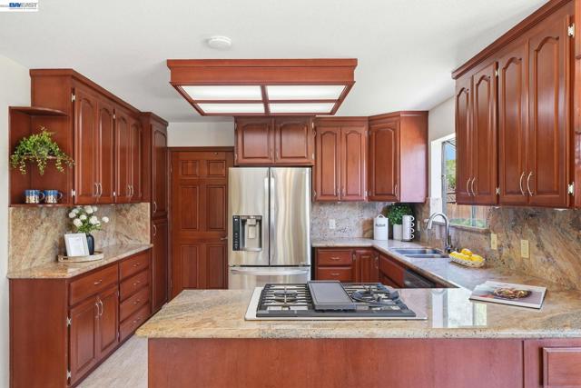 Beautiful Custom home located in the private gated Woodland Estate area. 4 larger bedrooms (or 3 plus office), 3.5 bath and 2099 sf of lush living space! True formal entry with private office entrance. Rich hardwood floors, upgraded tile and plush carpet. Enjoy the spacious kitchen that features granite countertops, gas range and cooktop, quality cabinetry, and a functional layout ideal for both everyday or entertaining. A main level laundry room & 1/2 bath with a exterior door for swimmers or gardeners. The vaulted ceilings and atrium provide wonderful natural lighting throughout. Exceptional versatility with a large comfy basement complete with a pool table & bar area and extensive storage—perfect for recreation, hobbies, or multi-use living space. One of the standout features is a stunning glass-enclosed sunroom, offering a bright and tranquil indoor-outdoor experience year-round. This well designed space is not included in the square footage, providing added value and lifestyle flexibility for relaxing or entertaining. Enjoy the Pool with waterfalls and landscaping, large side yard, nice front yard and welcoming entry. A rare chance to own a custom home with unique architectural features, flexible living spaces, and exceptional indoor-outdoor appeal in Livermore.