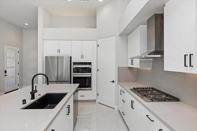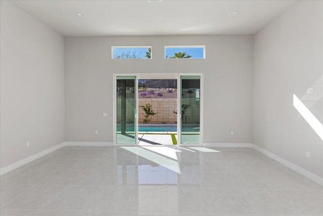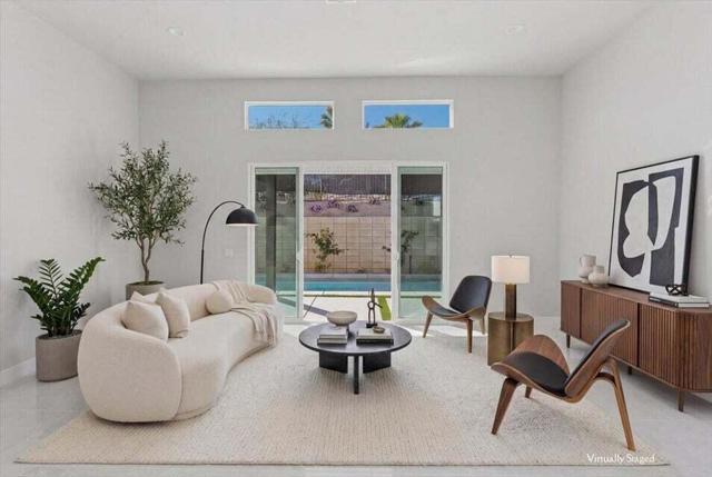 Discover the final opportunity at Volare in Bermuda Dunes! This beautifully designed Plan 2 home offers exceptional versatility and modern luxury, featuring 3 bedrooms and 3 full baths. The chef-inspired island kitchen is the heart of the home, showcasing sleek quartz countertops, stainless steel appliances, and a spacious walk-in pantry. Soaring 10-foot ceilings and 8-foot doors create an open, airy feel, complemented by designer interior paint, upscale flooring, and contemporary cabinetry throughout. Additional highlights include an interior laundry room with wash basin, matte black hardware and fixtures, and a fully finished 2-car garage with epoxy floors! Built with energy efficiency in mind, this home also includes owned solar for long-term savings. Step outside to your private backyard oasis, complete with a sparkling saltwater pool and spa, low-maintenance turf, and desert-friendly landscaping--ideal for relaxing or entertaining. Located within an exclusive gated enclave of just 18 homes, Volare offers privacy and a sense of community, all with low HOA dues of only $286 per month. You do not want to miss out on the opportunity! Short-Term rentals are allowed!!!