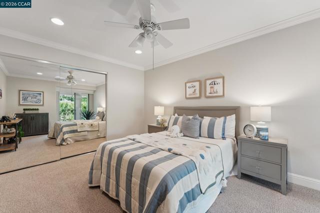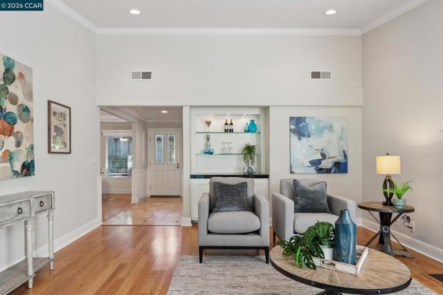 Located in Rossmoor, this updated single-level Whitney model offers bright, low-maintenance living in a premier 55+ Walnut Creek community. As a light-filled end unit, it features vaulted ceilings, expansive windows, and a cozy fireplace, plus a versatile den ideal for an office or guest space. The kitchen with skylight opens to a formal dining area, while the primary suite includes an en suite bath and a second bedroom sits near a hall bath. Enjoy a private patio with greenbelt views, the rare convenience of an attached two-car garage, and access to golf, swimming, fitness, and more—just minutes from downtown Walnut Creek and BART.