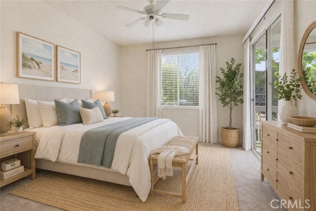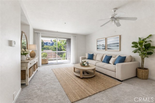 Welcome to Seabridge Villas in Huntington Beach, where coming home will feel like a year round staycation. This lovely community features guard gated entrances, two pools and spas, a fitness center, sauna, tennis courts, scenic walking paths, and s clubhouse that is available to rent for private events. This beautiful home has new neutral carpet and fresh paint. Stainless steel appliances in kitchen. The tub/shower enclosures have been newly reglazed and the primary tub/shower has new shower doors. Spacious living room with sliding door access to the balcony overlooking beautiful grounds and pool. Primary bedroom features dual closets, ceiling fan, window blinds and sliding door access to balcony. Secondary bedroom features walk-in closet, ceiling fan and window blinds. You have convenient inside stackable laundry with a brand new dryer. There is a private storage closet on your balcony. This home comes with two assigned parking spaces #'s 508 and 522, which are conveniently located near the elevator access, plus a generous number of guest parking spaces. Seabridge is located a short distance from the beach, Pacific City, Main Street, and the Huntington Beach Pier, with easy access to dining and shopping.
