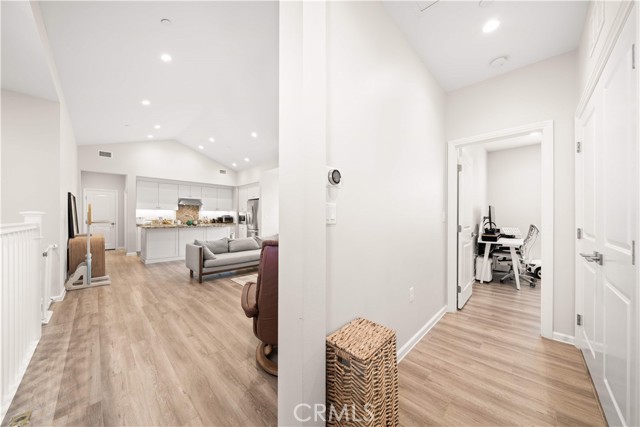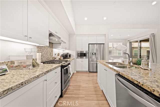 This beautiful Avalon Plan 2 residence built by Irvine Pacific is located in the highly desirable Eastwood Village master planned community and offers 2 bedrooms and 2 bathrooms with a bright and open floor plan. Filled with natural light, the home features high vaulted ceilings in the living and kitchen areas, creating an airy and inviting living space. The open concept kitchen overlooks the living room and is equipped with stainless steel appliances, making it ideal for both everyday living and entertaining. The primary bedroom and secondary bedroom are thoughtfully positioned on opposite sides of the home, providing added privacy. Both bedrooms feature walk in closets and recessed lighting. The second floor showcases laminate flooring throughout, complemented by wood plantation shutters that add warmth and elegance. A convenient second floor laundry closet with washer and dryer provides everyday functionality. Step outside to the private balcony, a perfect space to enjoy your morning coffee or unwind at the end of the day. The home also includes a direct access two car attached garage. Residents of Eastwood Village enjoy exceptional amenities including clubhouses, resort style pools, sports courts, parks, and BBQ areas, with Eastwood Elementary School within walking distance. Conveniently located near Woodbury Town Center, Zion Market, H Mart, 99 Ranch Market, Irvine Spectrum, and major freeways, and served by the award winning schools of Eastwood Elementary, Sierra Vista Middle School, and Northwood High School. A wonderful opportunity to own in one of Irvine’s most sought after communities.