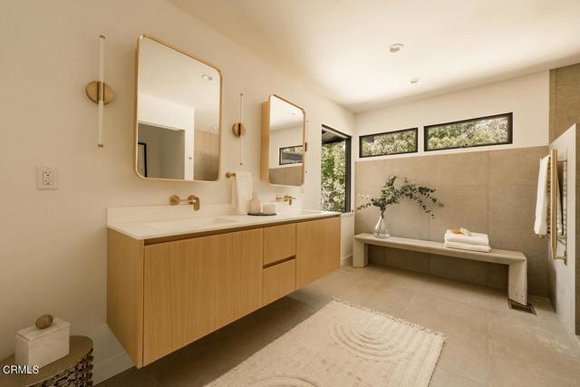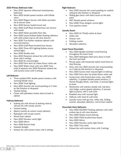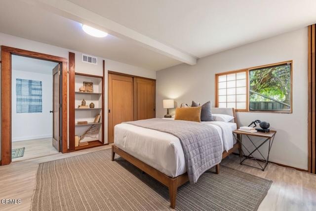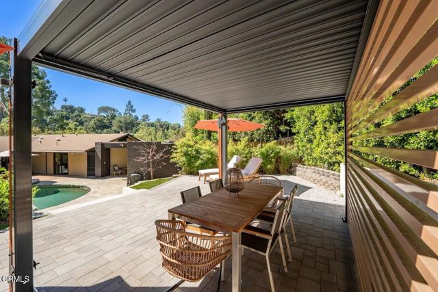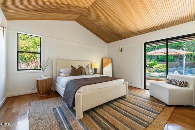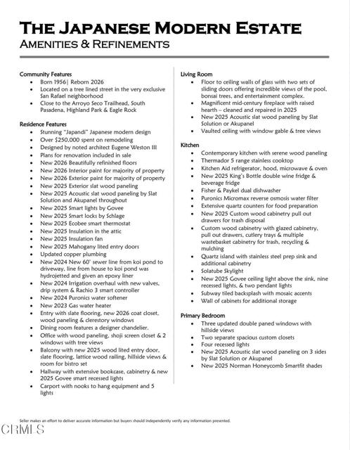 Set within the coveted hills of San Rafael, this exceptional Japanese modern estate offers a rare blend of refined design and tranquil, resort-style living. Reimagined in the sought-after Japandi aesthetic, the south-facing residence embodies a seamless balance of contemporary elegance and natural serenity--ideal for both everyday living and elevated entertaining.A striking approach evokes a private Japanese garden, where concrete pavers with moss inlays lead through curated landscaping to a newly constructed koi pond with cascading waterfalls, a viewing deck, and mature koi. A serene courtyard with a rock garden and custom planters provides a peaceful introduction to the home.Inside, the formal entry opens to a dramatic open-concept floor plan. The living room impresses with vaulted ceilings, walls of glass framing the outdoor oasis, a sleek modern fireplace, refinished wood floors, and custom wood-paneled walls. The kitchen is thoughtfully appointed with quartz countertops, abundant cabinetry, stainless steel appliances, a skylight, and a generous island.The primary suite serves as a private retreat, featuring treetop views, dual custom closets, and refined finishes. The spa-inspired bath offers a luxurious escape with an oversized shower, dual floating vanities, heated towel racks, and a separate water closet. Secondary bedrooms include vaulted ceilings, updated lighting, hillside views, and direct access to outdoor amenities.A beautifully finished lower-level guest house provides exceptional flexibility, complete with a private entrance, living area, kitchenette, laundry, and a serene bedroom with office nook. The updated bathroom continues the home's signature Japanese spa aesthetic with refined finishesThe grounds are a true sanctuary. A cascading waterfall flows past mature bonsai and a Japanese bridge to a large pool and spa. An upper terrace features a louvered gazebo and ample lounging space, while a custom concrete fire pit invites gathering. A covered cabana, updated pool bath, tranquil tea house, and expansive wood-style patio complete this remarkable outdoor setting.After nearly two years and approximately $250,000 in thoughtful enhancements, this residence stands as a true work of art--an inspired vision brought to life. Offering unparalleled tranquility and design in one of Pasadena's most picturesque settings, this is a once-in-a-generation opportunity to own one of the city's most distinctive and captivating properties.