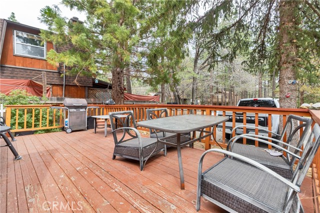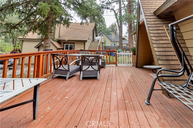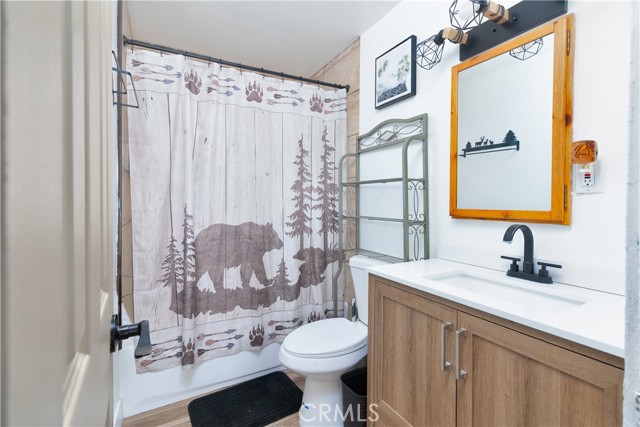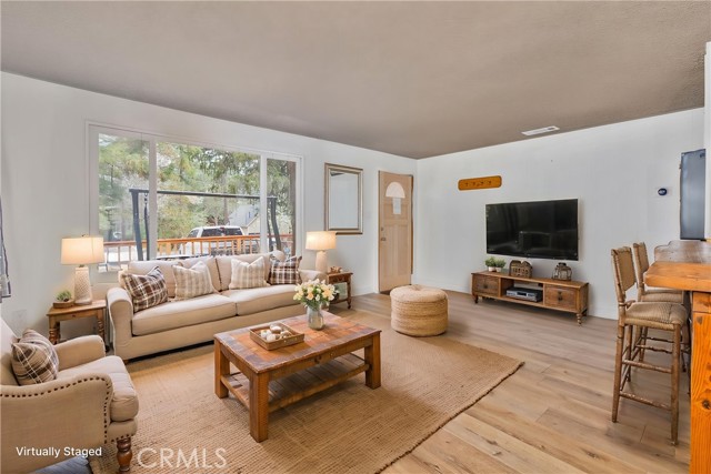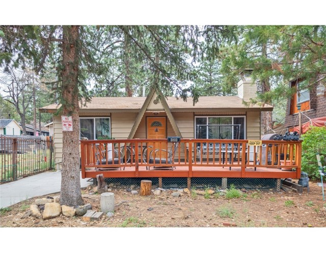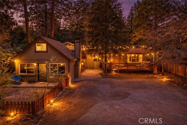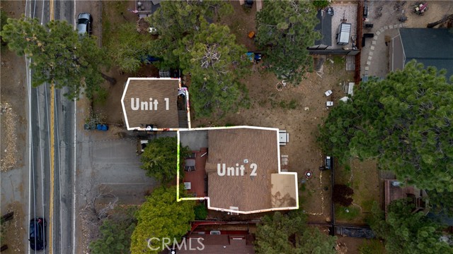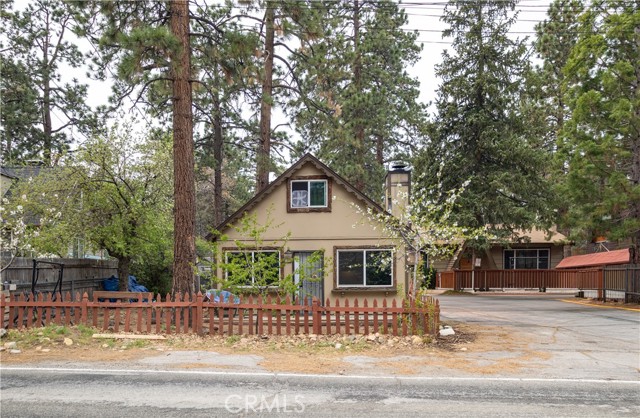 Excellent income and investment opportunity—two cabins on one lot in the Sugarloaf area of Big Bear. The two-story 1BD/1BA cabin (approx. 600 sq ft) features the bedroom upstairs with kitchen, living room, and bathroom on the main level. Updates include new kitchen cabinets, a recently painted bathroom with new vanity, and a front patio. The single-story 2BD/1BA cabin (approx. 920 sq ft) offers refreshed kitchen cabinets, new bathroom vanity, fresh interior paint, a private front deck, and private indoor laundry. Both units share a large backyard that can be easily separated by fencing. Separate gas and electric meters; shared water meter. Parking for four cars in shared driveway. Situated on an approx. 8,015 sq ft lot, located 10 minutes from downtown Big Bear, near a fire station, post office, and high school, with seasonal snowfall. Suitable for short-term rental, long-term rental, or personal use. Buyer to verify all uses and regulations.