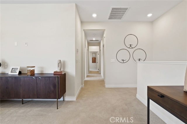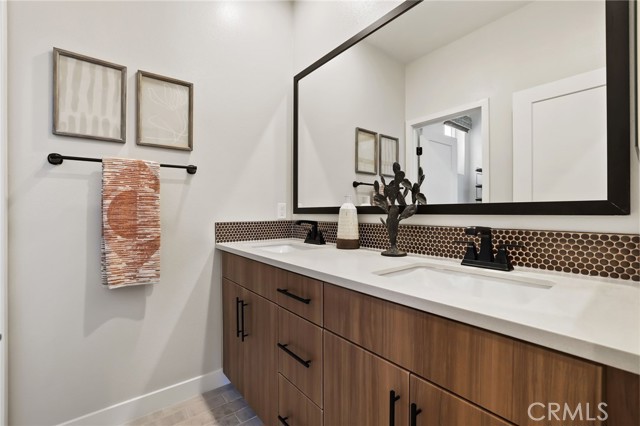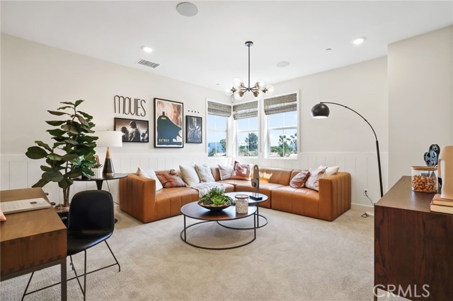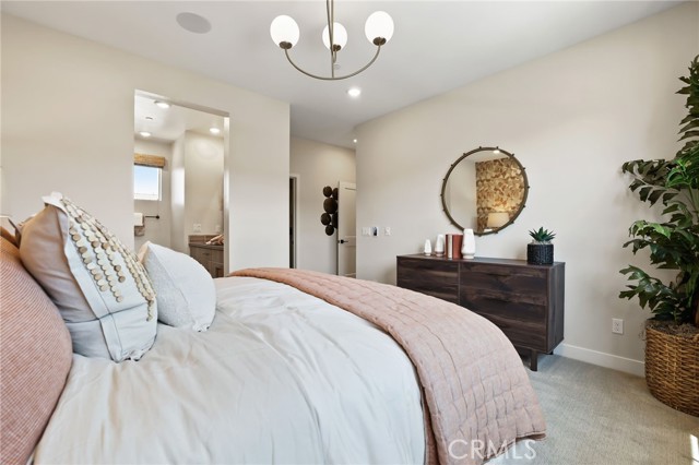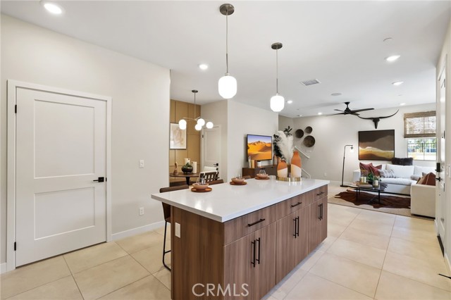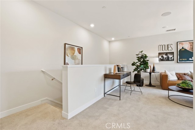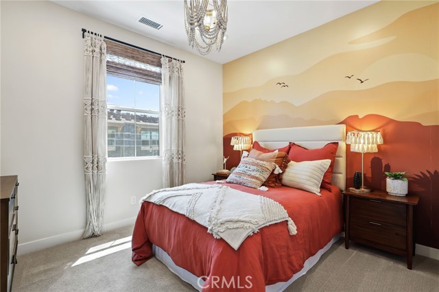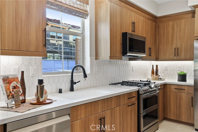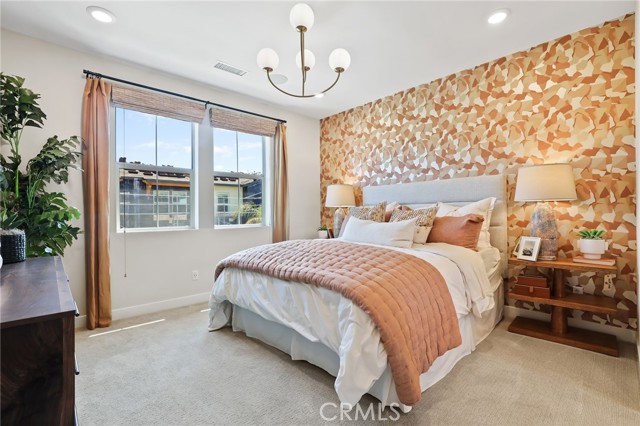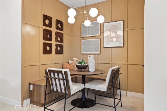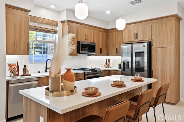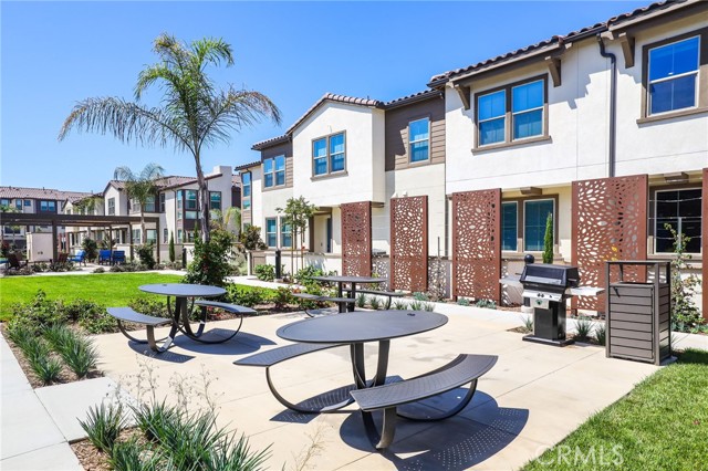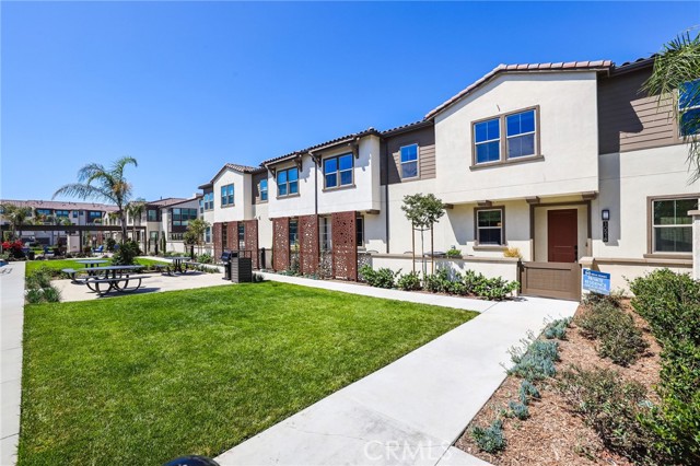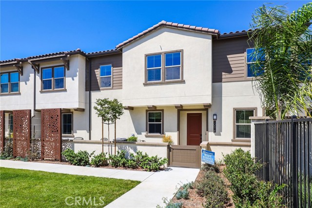 Former end unit Melia homes private model home with all the upgrades and finishes. Enter through the private entertainers ground level patio adjacent to the community pool for convenience. The gourmet kitchen is open to the family room with a built-in breakfast nook and walk-in pantry closet. shower. The entry level also includes an attached two-car garage with an universal car charger, tankless water heater. The upstairs features an open, bright entertainment loft, two guest bedrooms, laundry room, and the primary master suite. Additional upgrades include custom window coverings, LED recessed, lighting throughout, a whole-house fan, and a programmable Wi-Fi smart thermostat, front door lock. Community amenities including a pool, spa, BBQs, and picnic area. This home is conveniently located near Costco, Trader Joe's, and in a coveted school district. Photos were professionally taken with model home furniture.