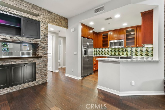 Available May 5th, this unique Aliso Viejo townhome stands out for its open floor plan and impressive 25-foot ceilings that frame views of the mountains and city lights. The layout is built for hosting, with a seamless flow between the family room, dining area, and a kitchen featuring quartz countertops and stainless-steel appliances. High-end custom touches are found throughout, including hardwood flooring, crown molding, bespoke lighting, and specialized additions like a built-in wine bar and a balcony bar. Both bedrooms are well-sized, featuring walk-in closet organizers for maximum storage. Practicalities include a two-car tandem garage with extra storage space and access to The Club’s resort-style gym, pool, cabanas, and outdoor fireplaces. The location is highly walkable, sitting just a short distance from the shopping, dining, and theaters at Aliso Viejo Town Center. 2-Car Tandem Garage-parking only; no overnight guest-spot access for residents.