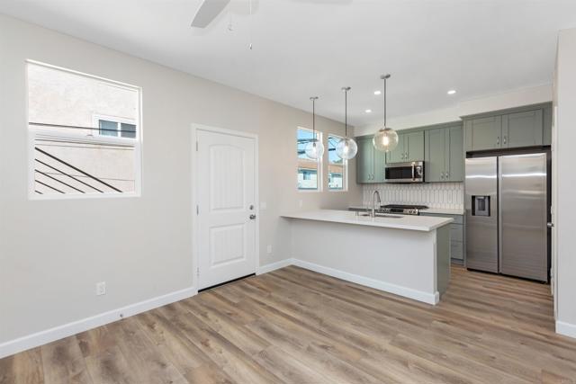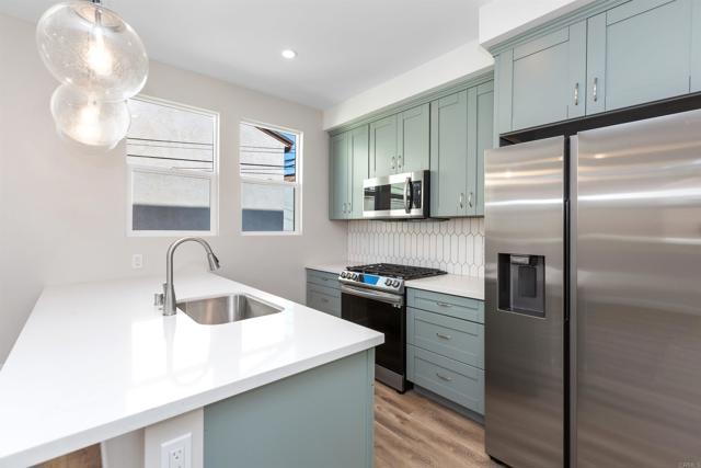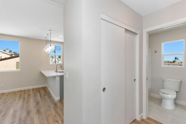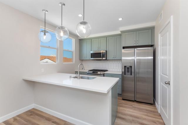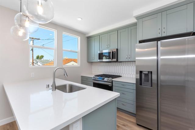 2714 Camulos St, Ocean Beach in San Diego, CA. Ocean Beach - Near new duplex construction with excellent location! One unit is rented, 2nd unit available (2714 Camulos, 2nd floor unit) for May 1st 2026 move-in, $3,300/month, All utilities included (Water/Natural Gas/Electricity/Trash). Includes attached one car garage.Tthe unit features an open floor plan with a large living /dining space, 2 spacious bedrooms, 2 full baths and attached 1 car garage. The newer kitchen has quality cabinets, quartz counters, an island-type bar with pendant lights, pantry and stainless steel appliances (including fridge). Each bedroom offers ceiling fans, large windows, luxury vinyl plank flooring and closet. Some of the windows offer views of the lagoon, neighborhood and city lights. the unit offers 2 baths with tile flooring, tub/shower combo and free standing vanity. Interior laundry closet with washer/dryer combo. Desirable Ocean Beach: the location is convenient; close to parks, beaches, bikeways, shopping centers, restaurants, schools, with easy freeway access. Live the Southern California Lifestyle! Pets are considered with restrictions. The square footage is approximate and not guaranteed.